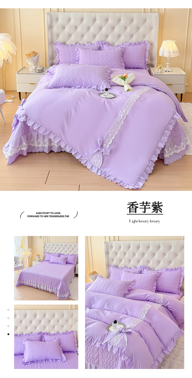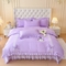 金米诺 新款韩版花边水洗棉泡泡纱四件套公主条四件套 褶皱-浅紫,褶皱-浅紫
