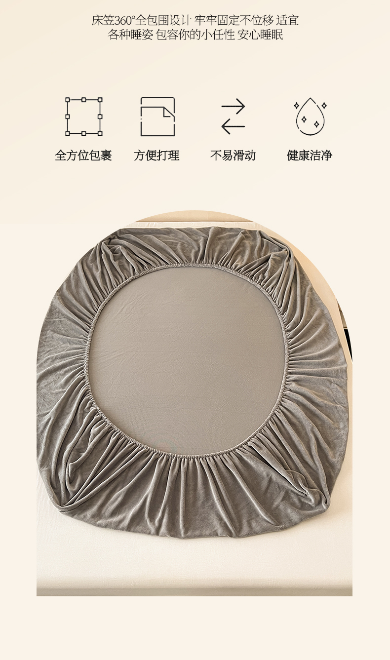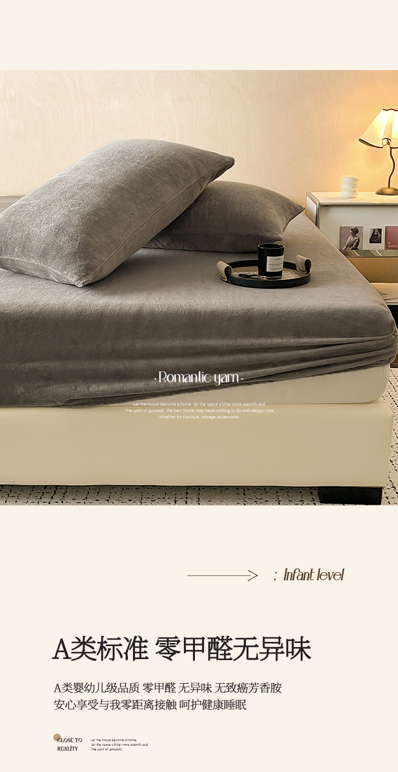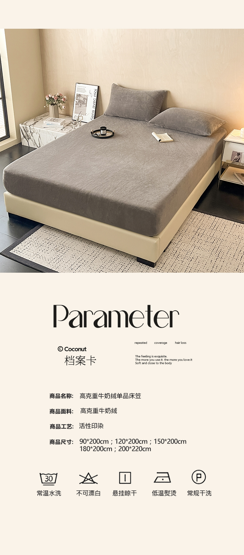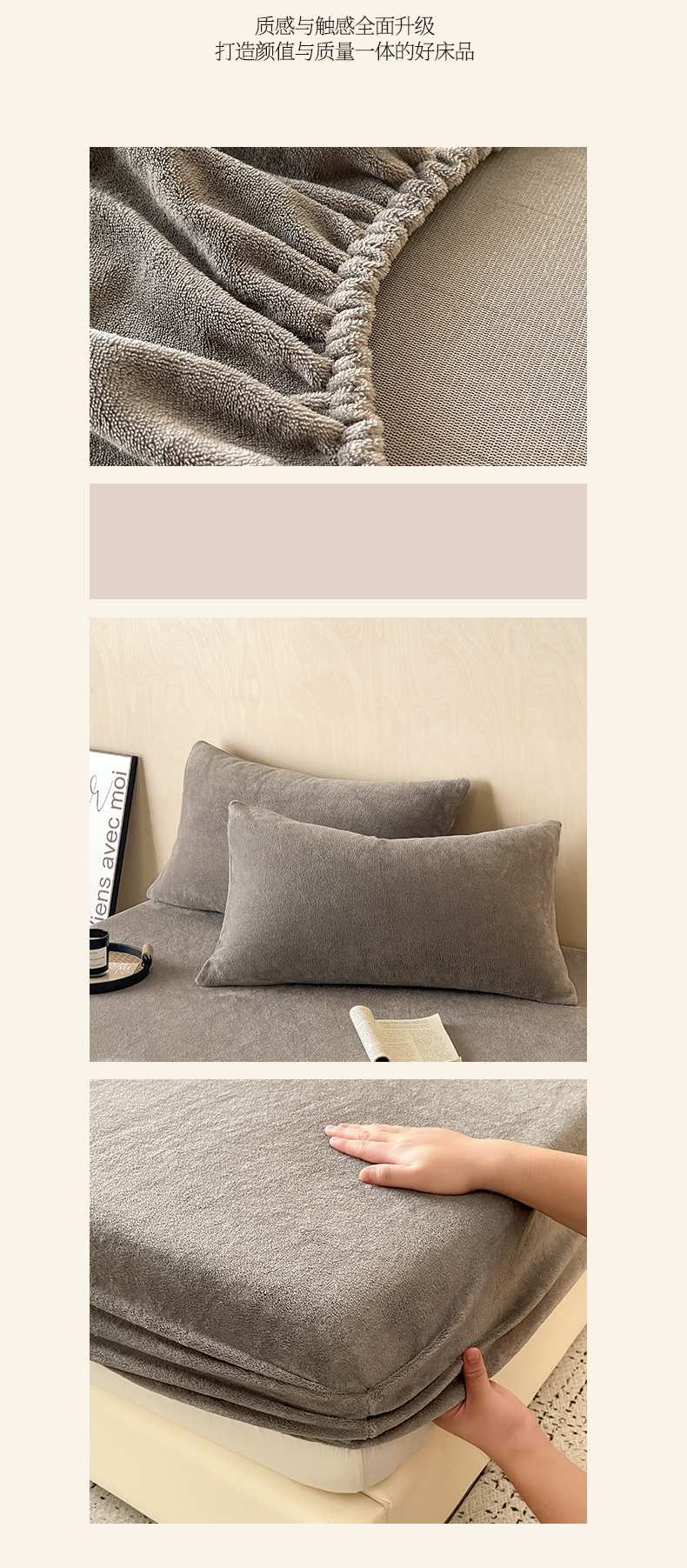 佰亿莱 2024新款高克重加厚牛奶绒单品床笠-梦娜系列 梦娜-深灰色