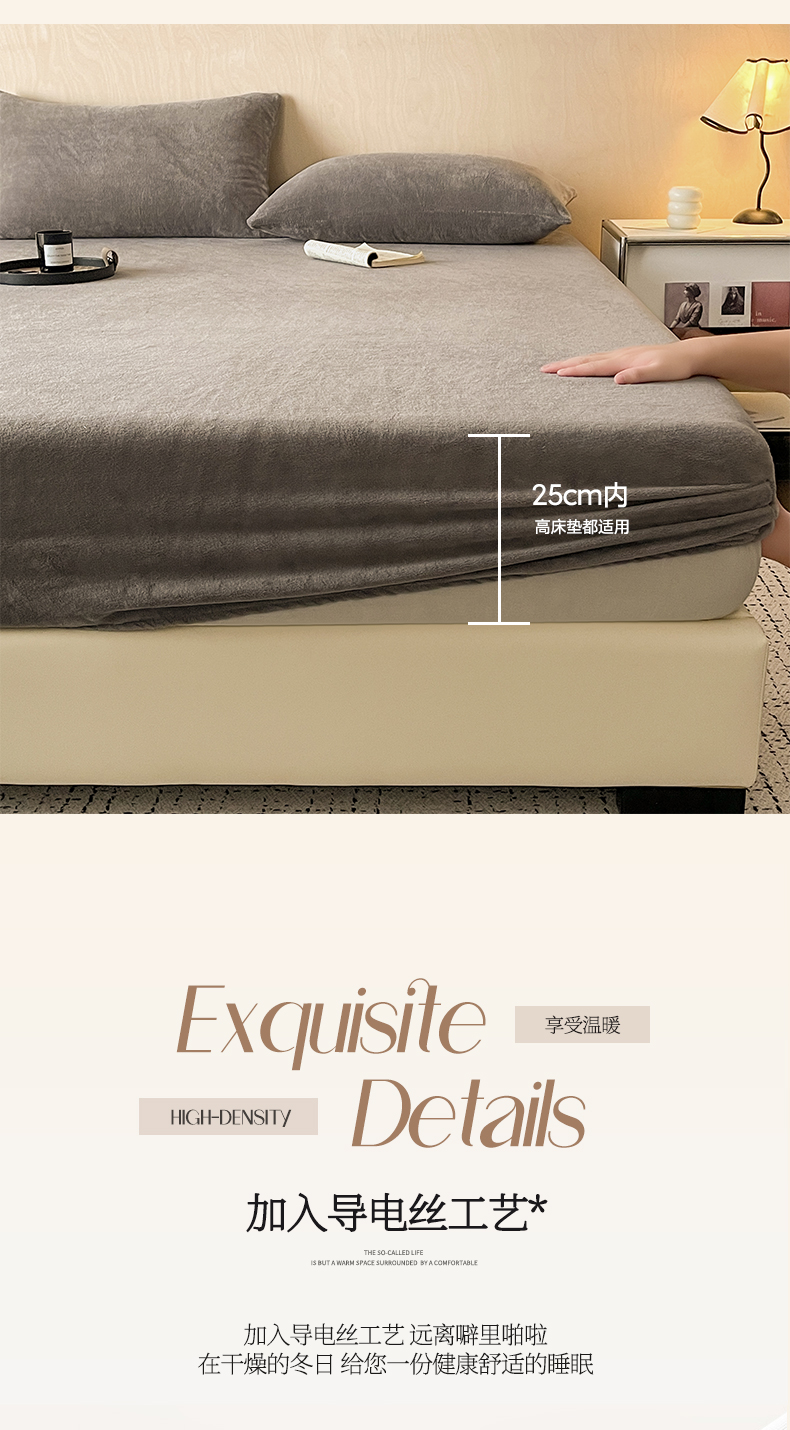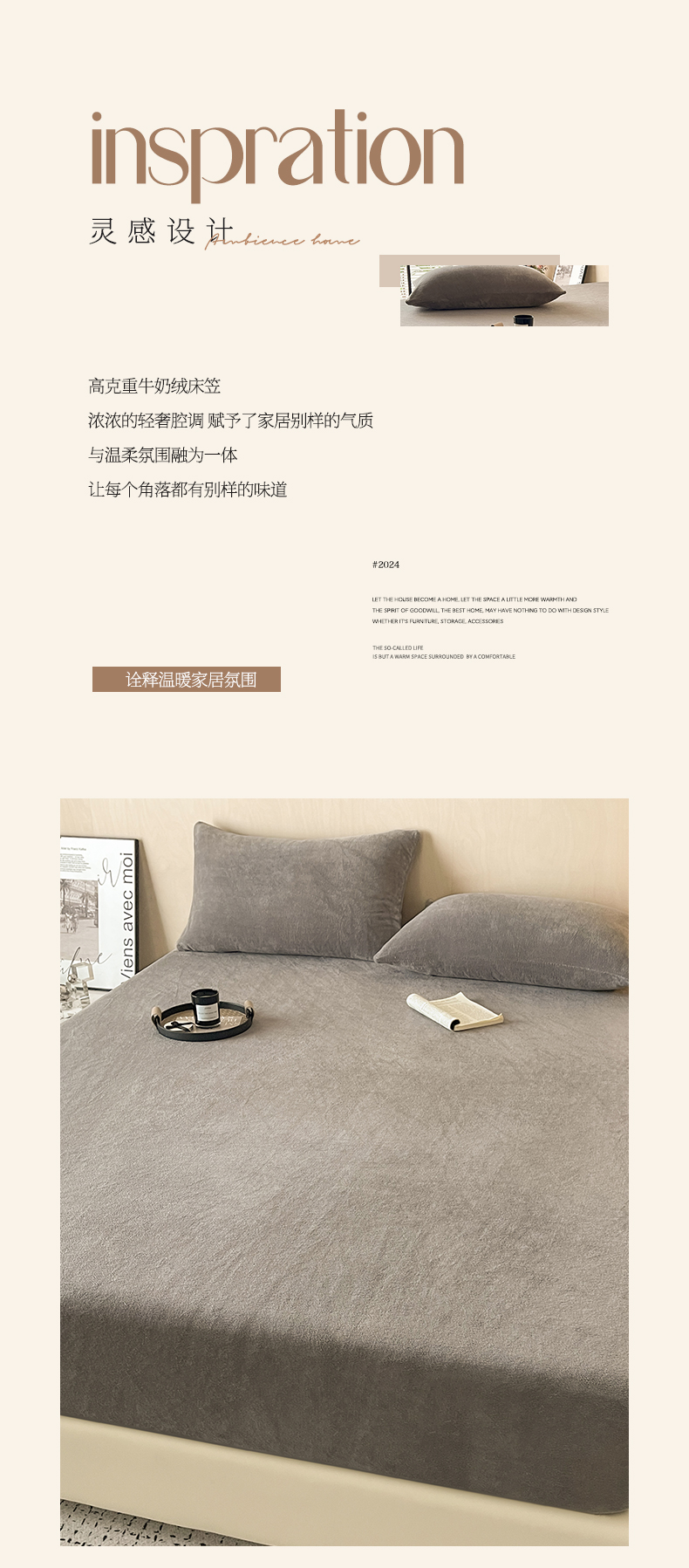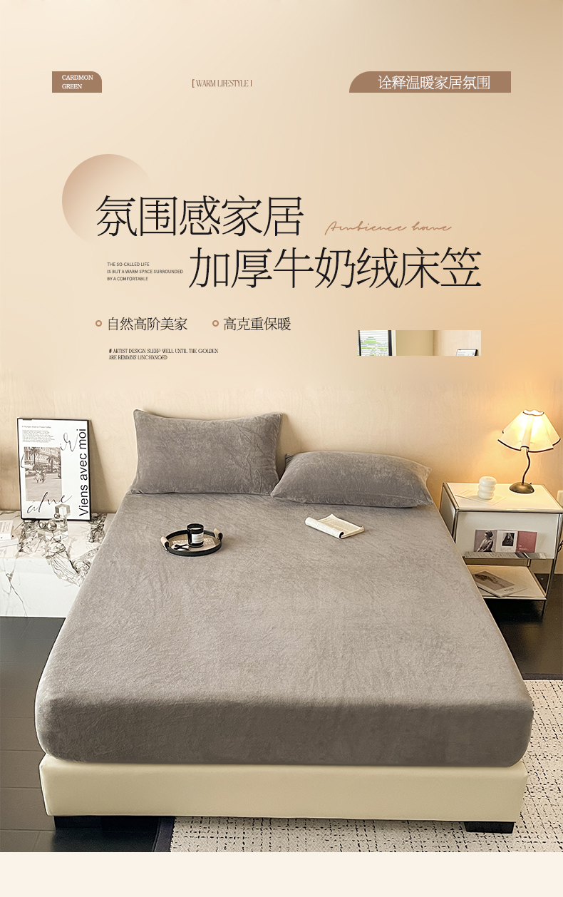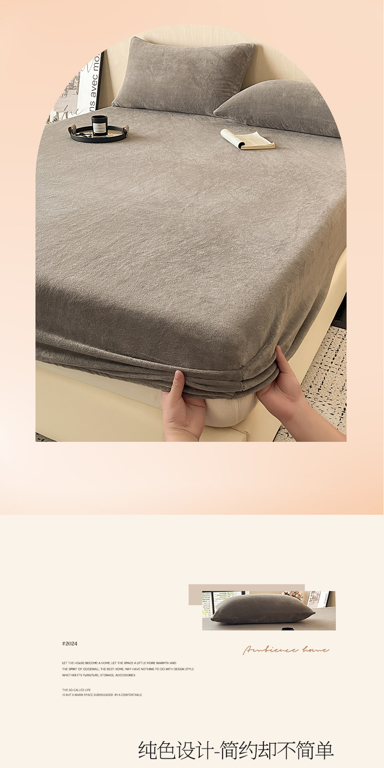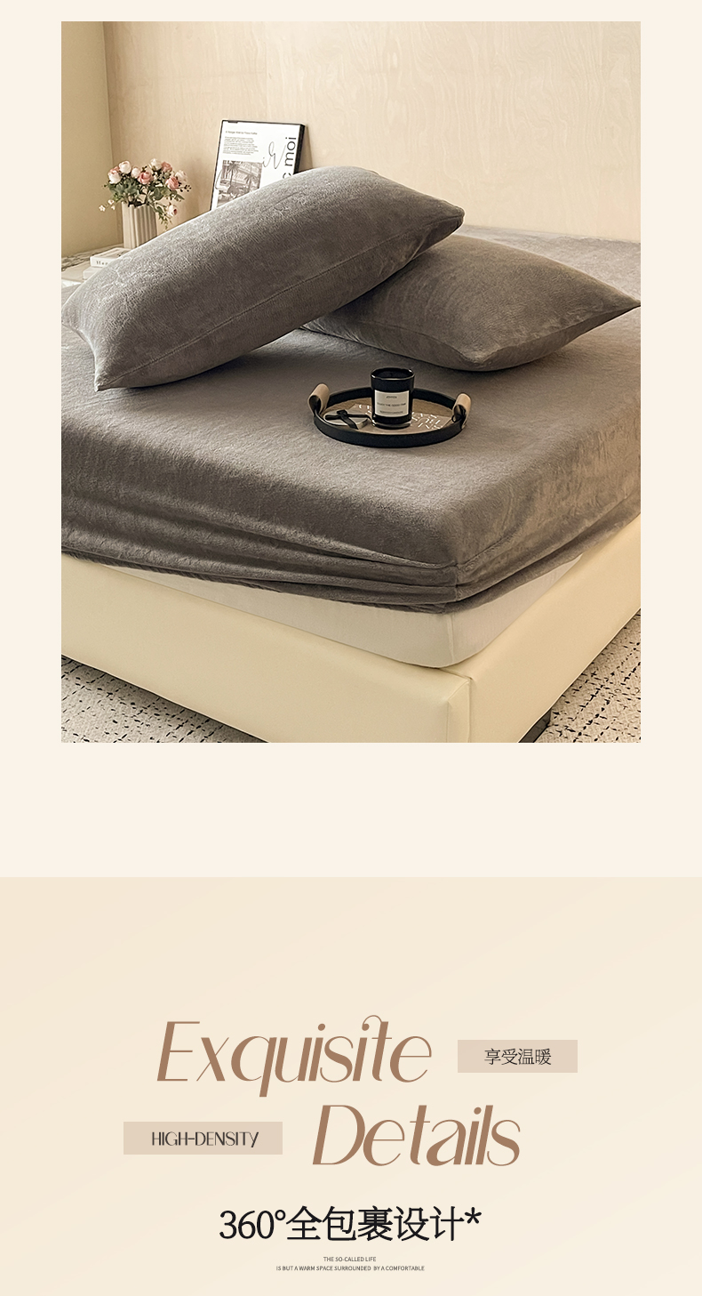 佰亿莱 2024新款高克重加厚牛奶绒单品床笠-梦娜系列 梦娜-深灰色