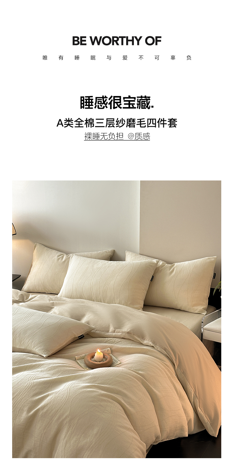 当前位置: 91家纺网 > 商品网购 > 床品套件 > 四件套 > 全棉普通四件套 > 典曼家纺 2024秋冬新款A类三层纱加厚磨毛大提花四件套 波洛-米