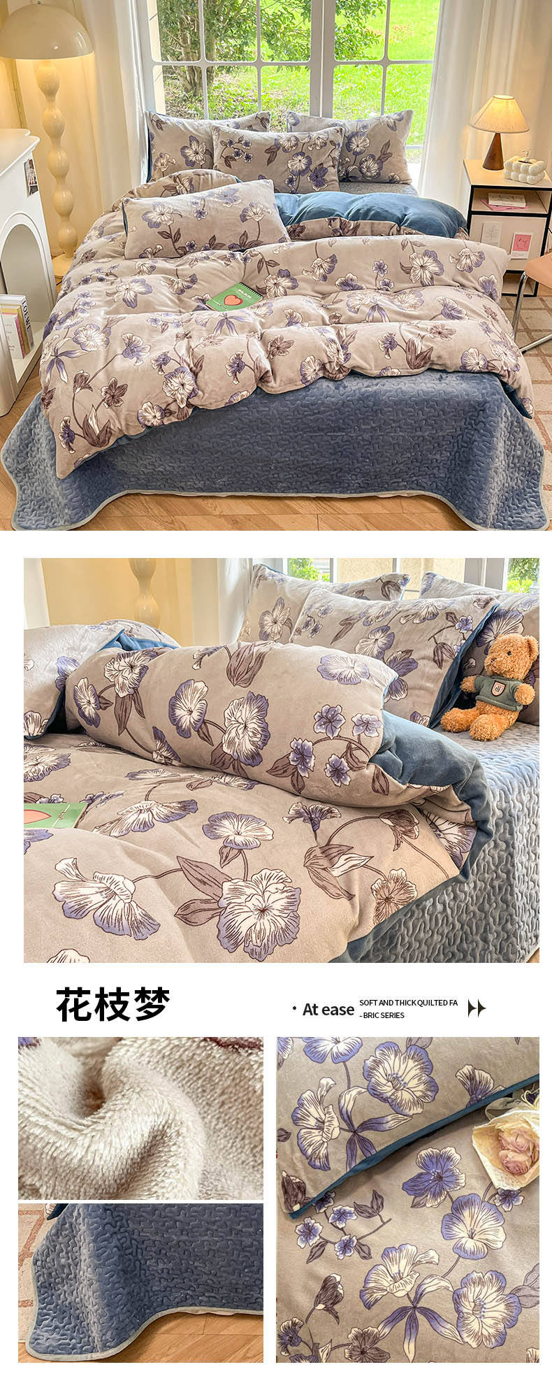 新印象 2024新款韩式双面牛奶绒床盖四件套 花枝梦