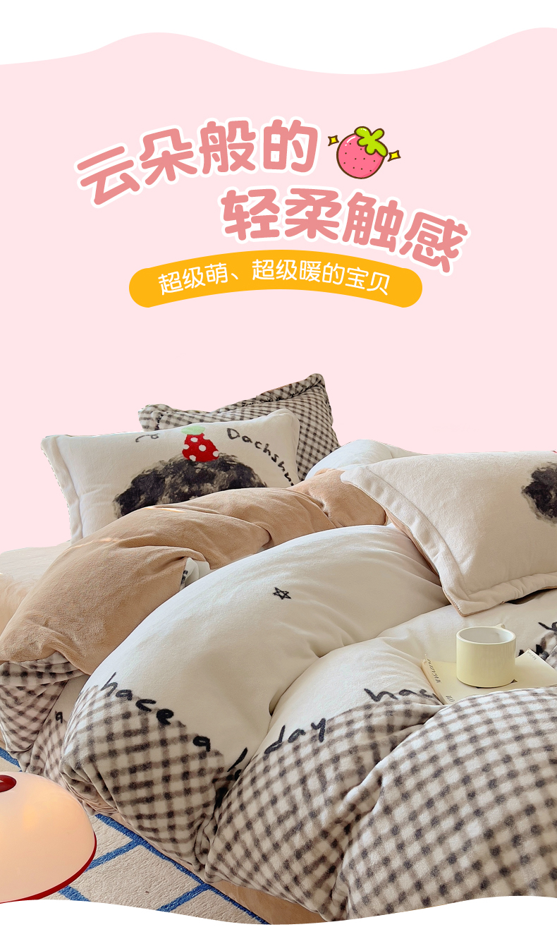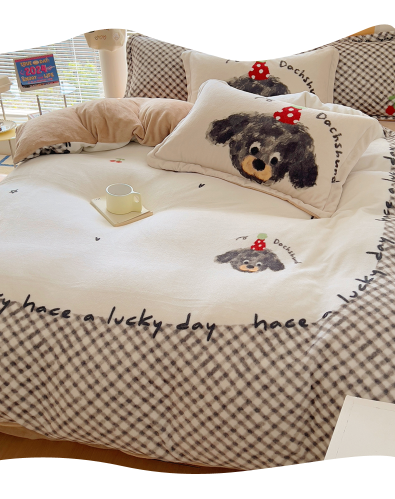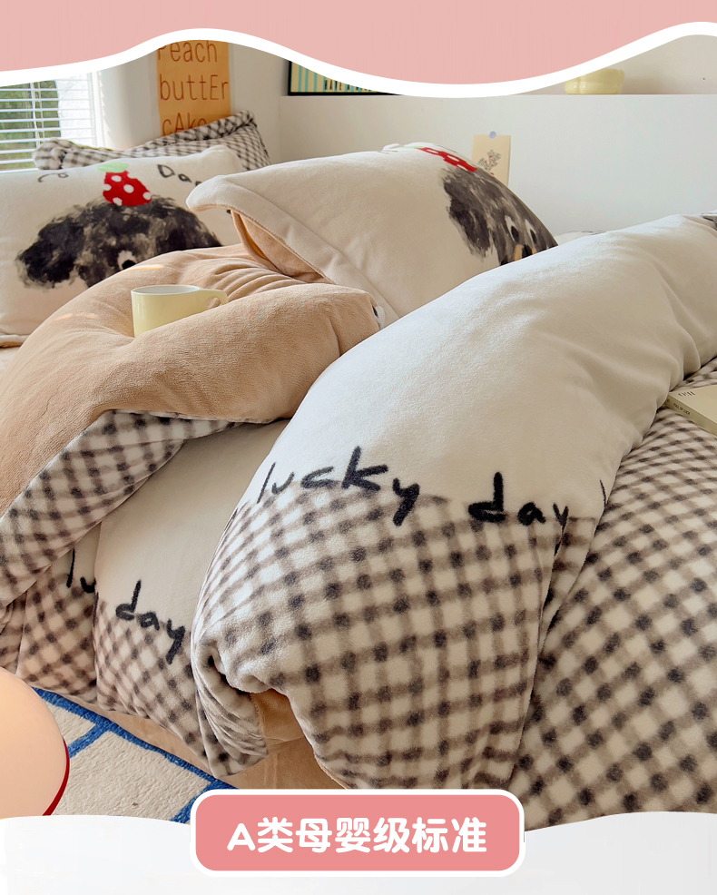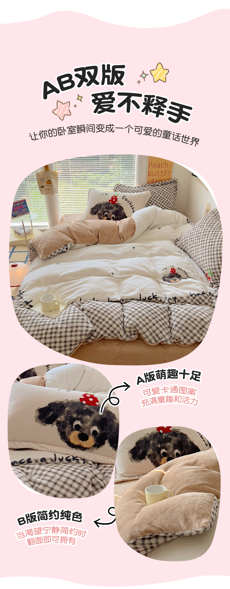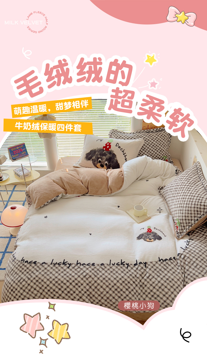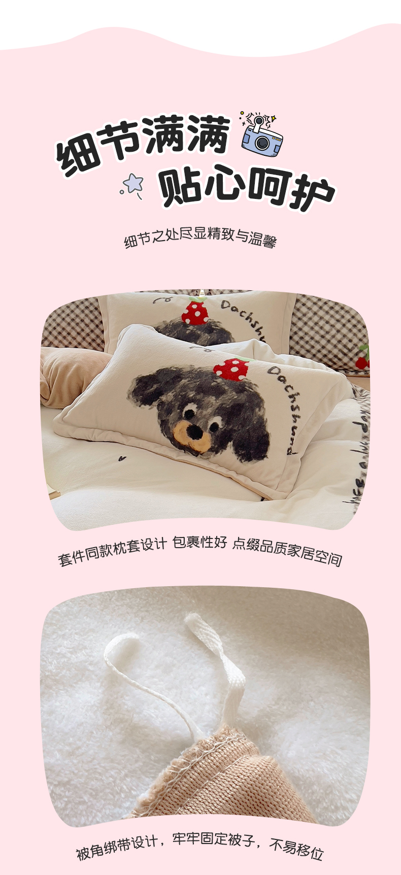 金爱家 2024新款ins大版牛奶绒数码印花四件套 绒大版-樱桃小狗