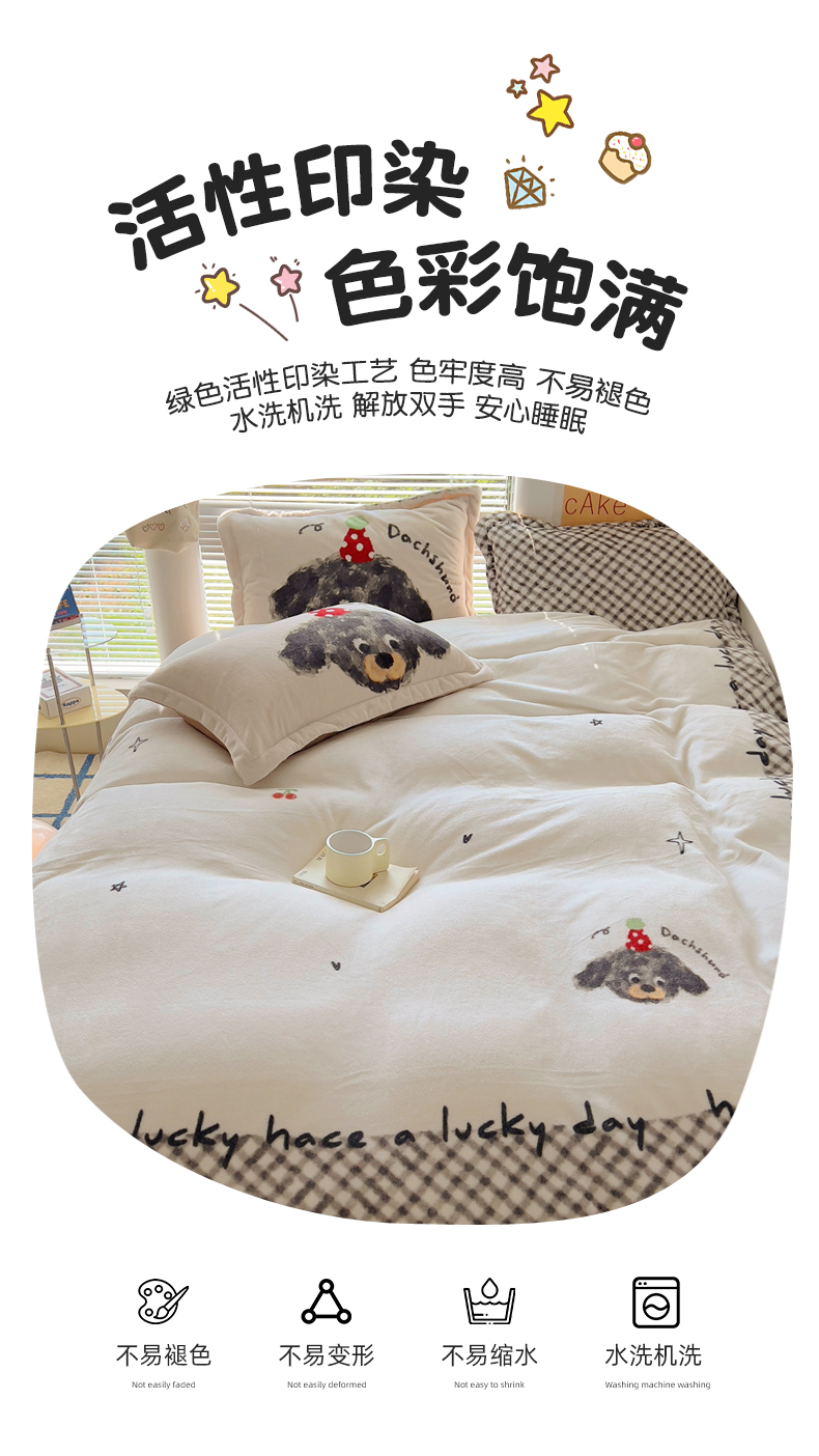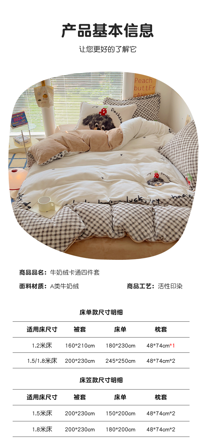 商品名称:金爱家 2024新款ins大版牛奶绒数码印花四件套 绒大版-樱桃小狗