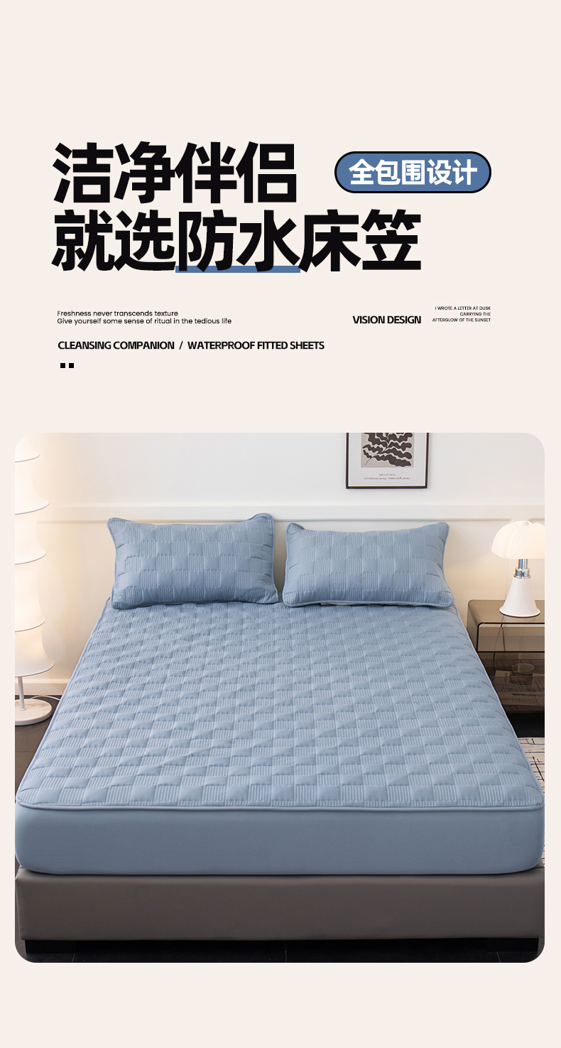 商品名称:暖季家纺 2025新款夹棉防水床笠成人款 莱律-雾蓝