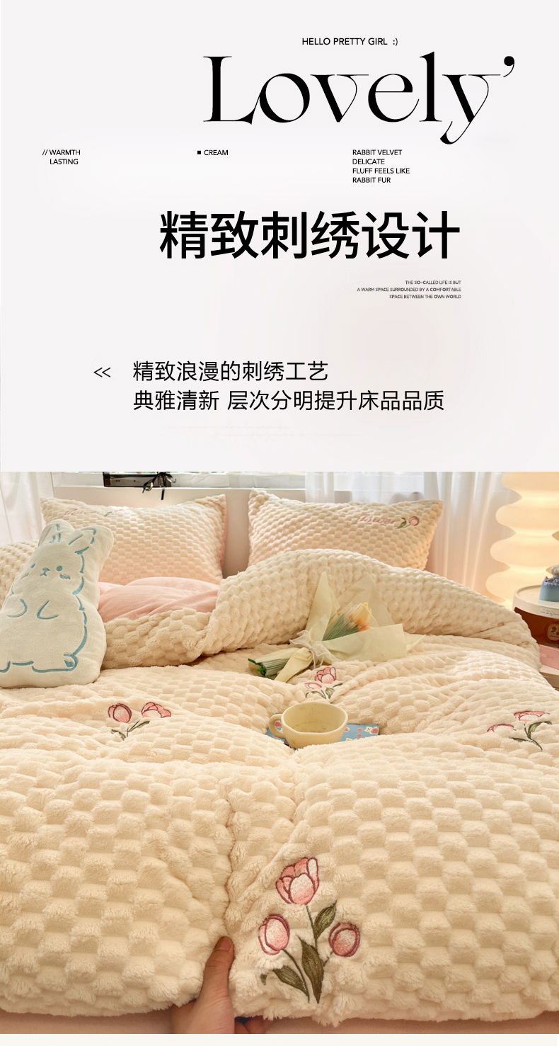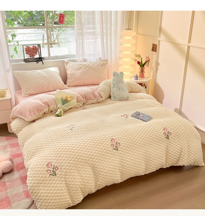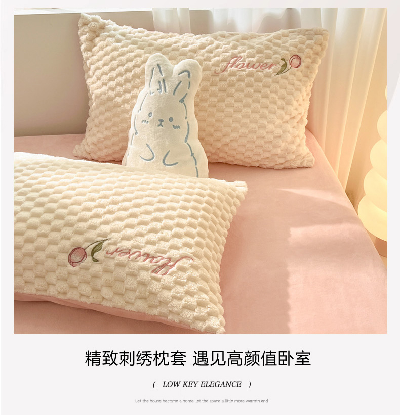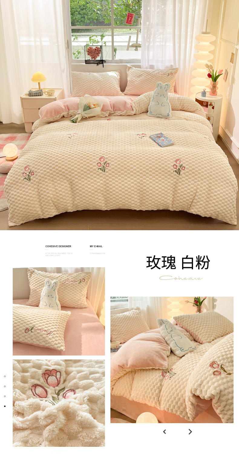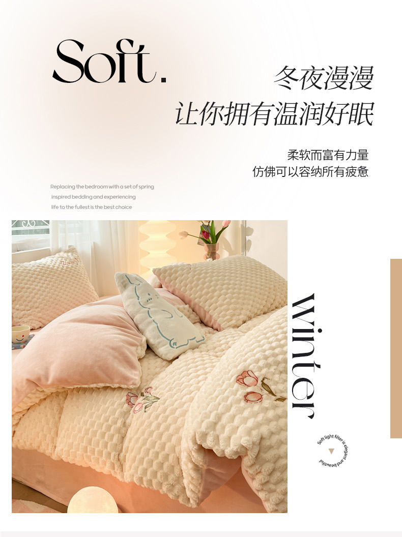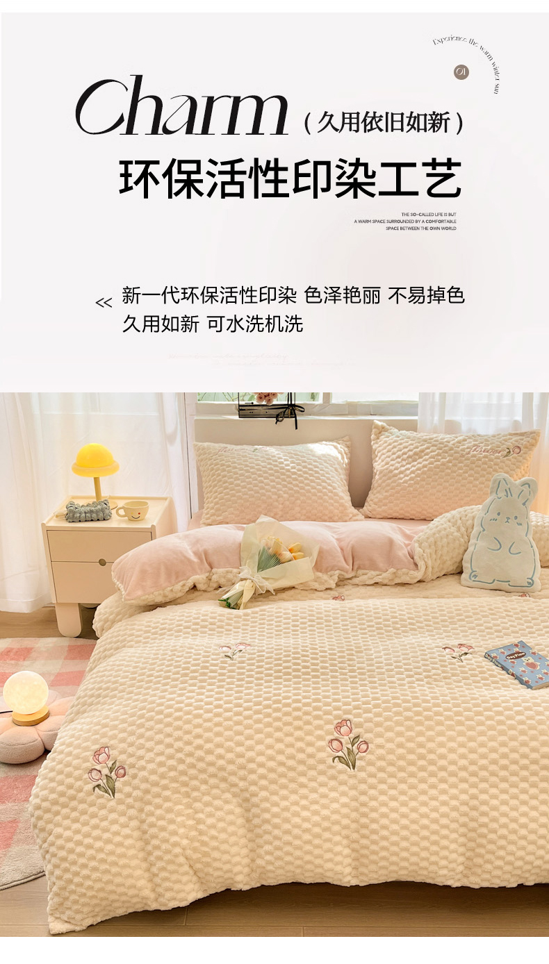 当前位置: 91家纺网 > 商品网购 > 床品套件 > 四件套 > 其它四件套 > 慕尚家纺 2025新款豆豆绒刺绣四件套 玫瑰 白粉