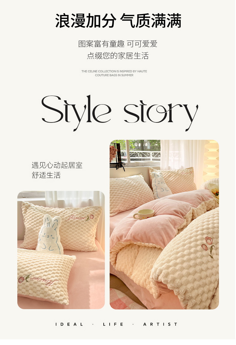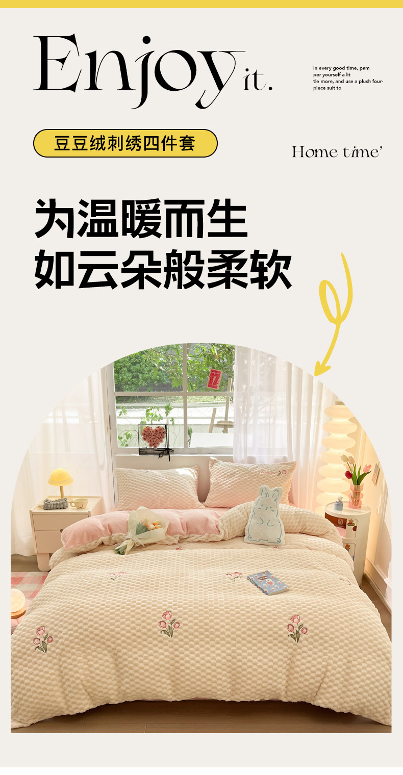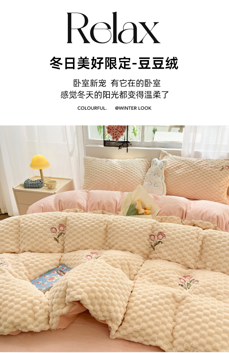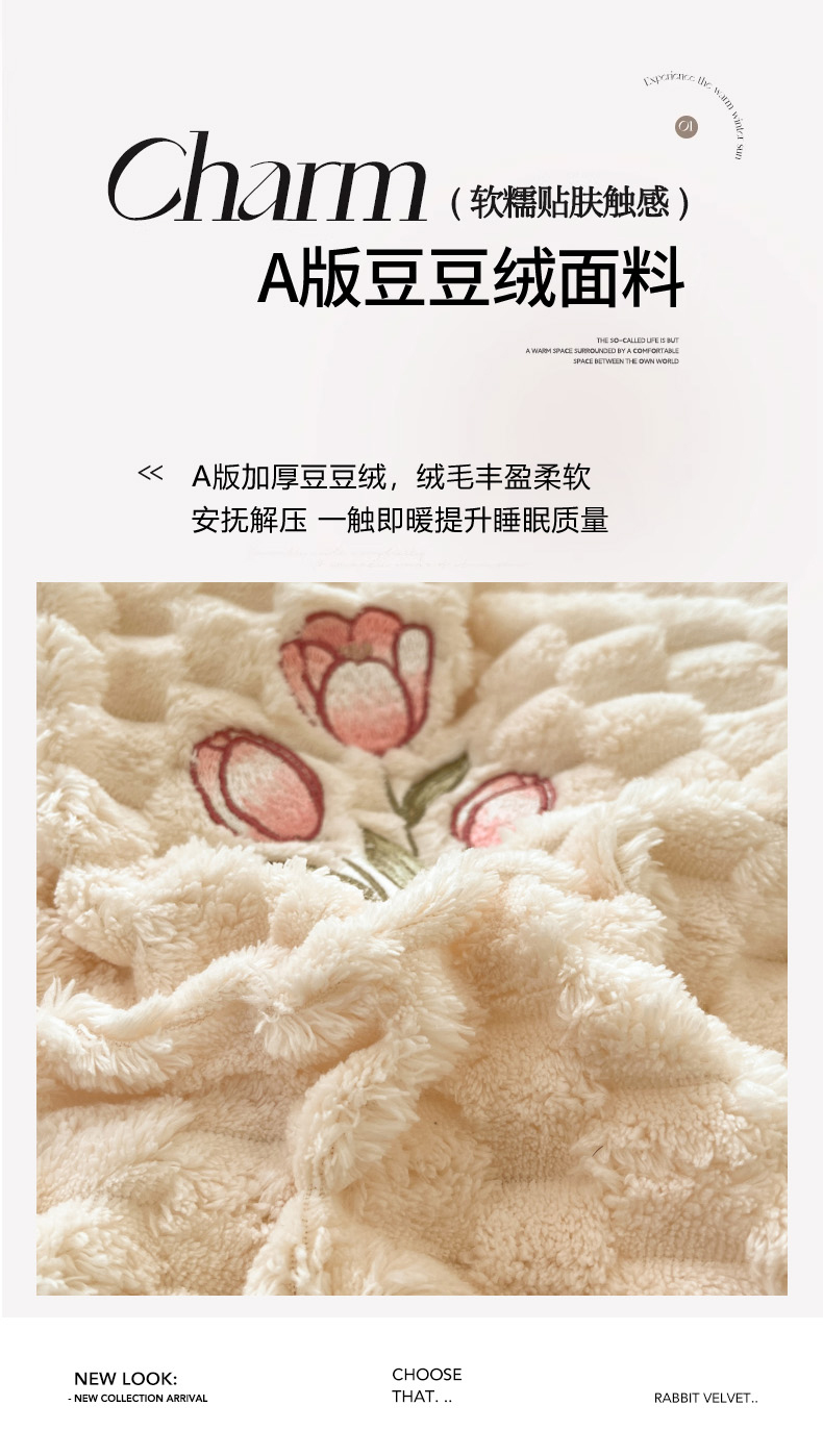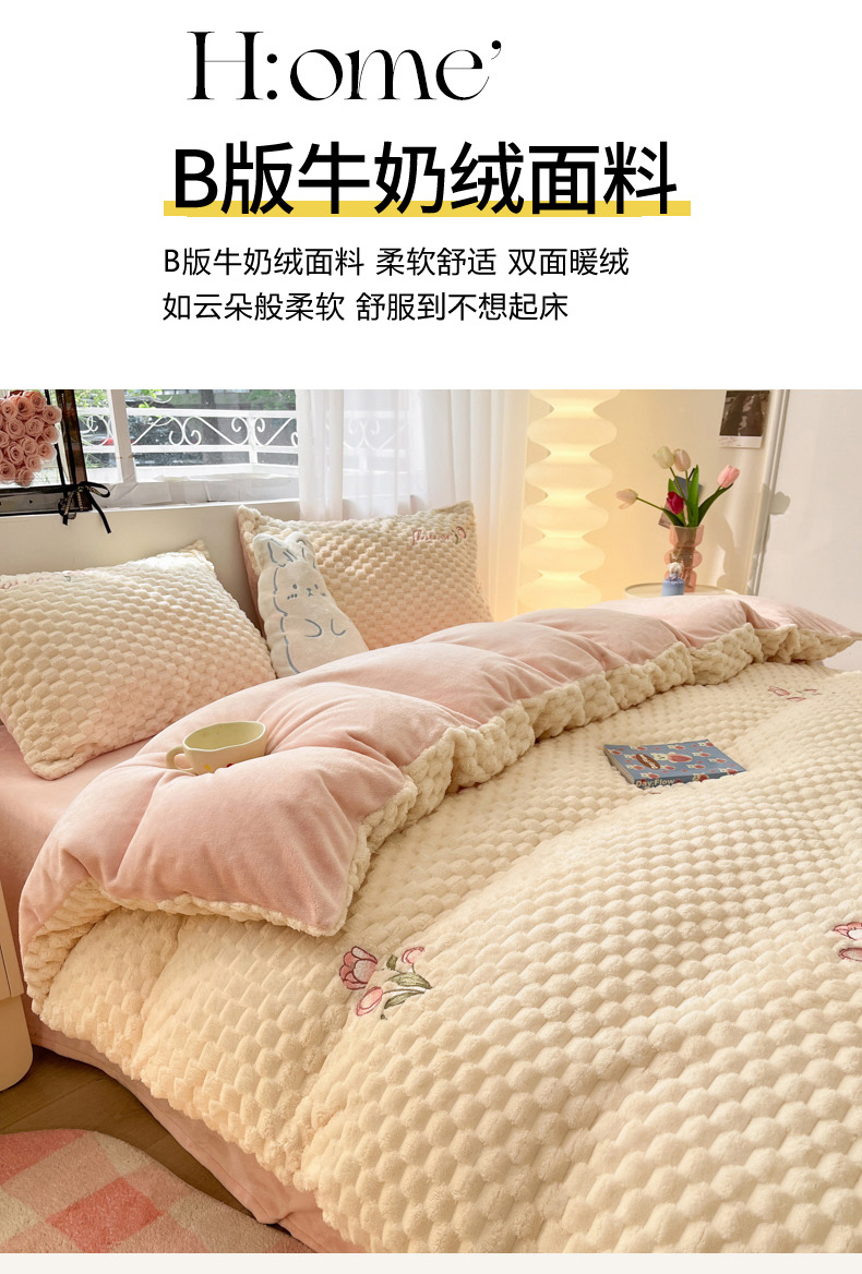 当前位置: 91家纺网 > 商品网购 > 床品套件 > 四件套 > 其它四件套 > 慕尚家纺 2025新款豆豆绒刺绣四件套 玫瑰 白粉