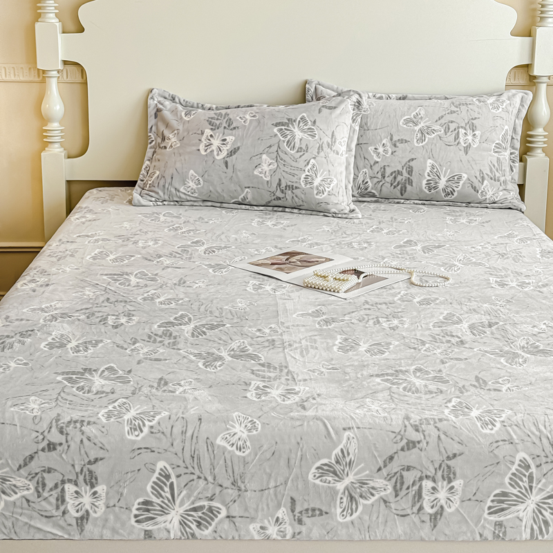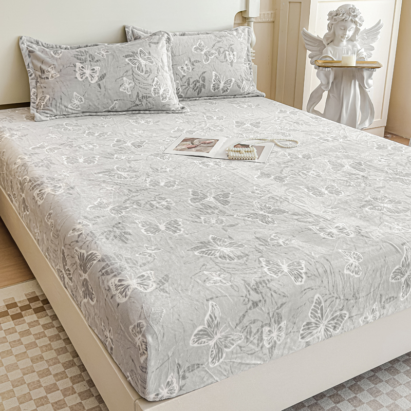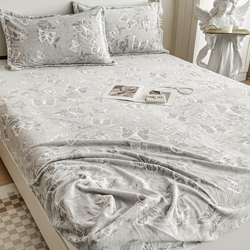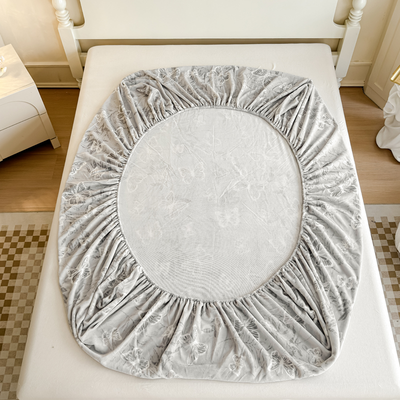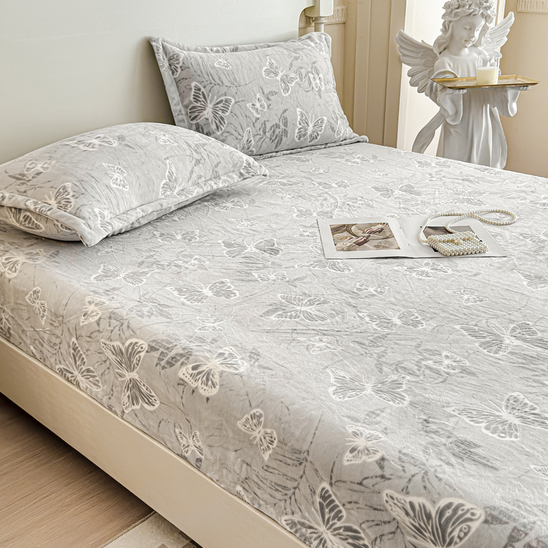金丝鸟家纺 2024新款加厚240g立体雕花牛奶绒床笠 蝴蝶飞 灰