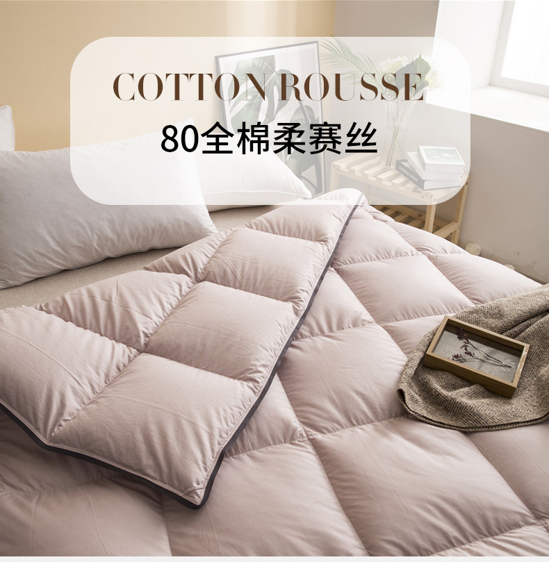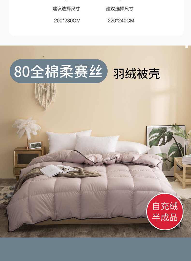 商品名称:(总)80全棉柔赛丝织带羽绒被壳自充绒半成品防钻绒毛被芯内胆布料厂家