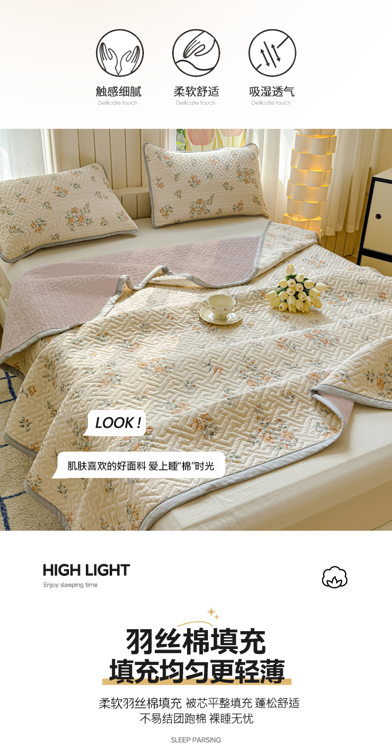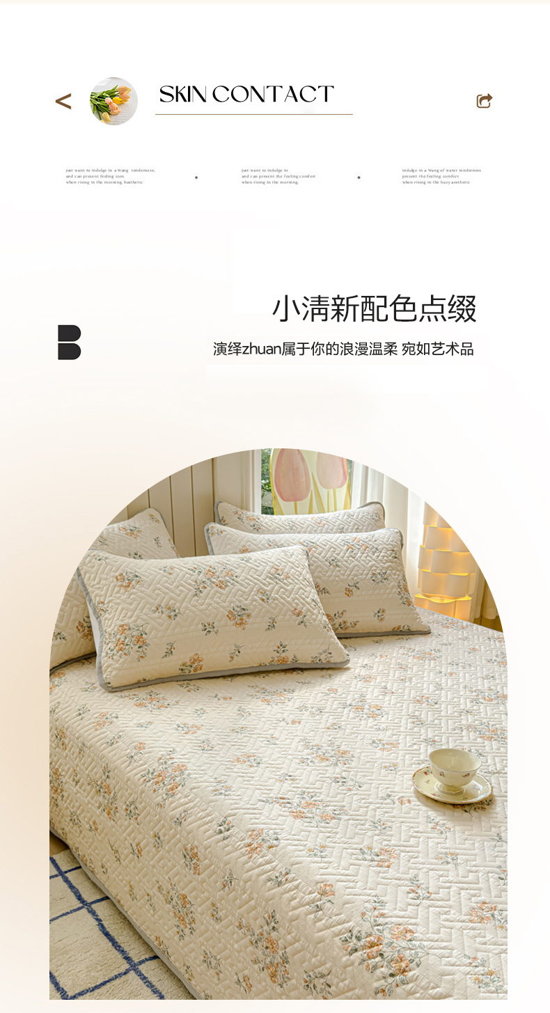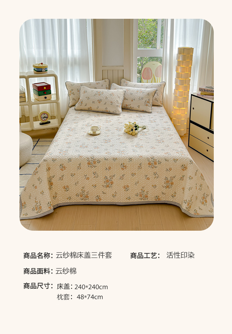 (总)芯元素 2024新款云纱棉床盖三件套,暗香,海盐蓝,花海,瑾年,青草绿,绅士咖,甜心兰,樱花粉