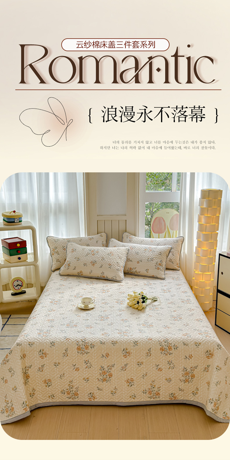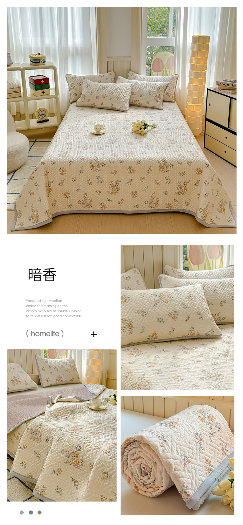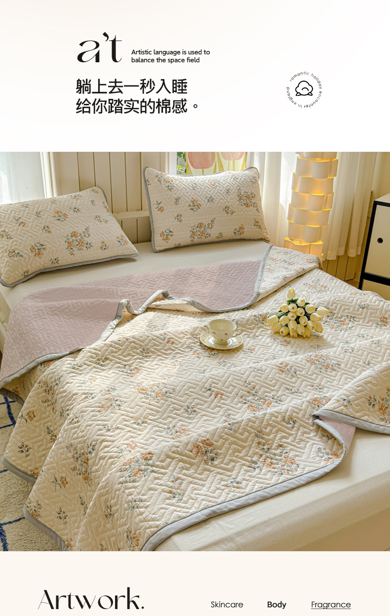 (总)芯元素 2024新款云纱棉床盖三件套,暗香,海盐蓝,花海,瑾年,青草绿,绅士咖,甜心兰,樱花粉
