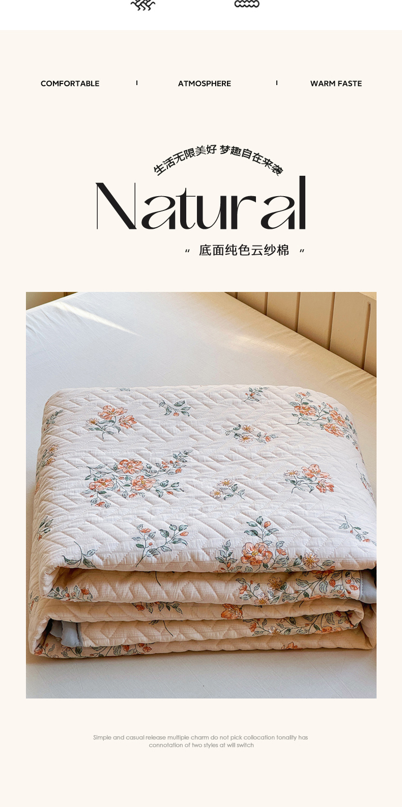 (总)芯元素 2025新款木棉绉绉纱双面可用床盖,紫恋,花季,梦境-灰,梦境-紫,山野栀子,小城故事
