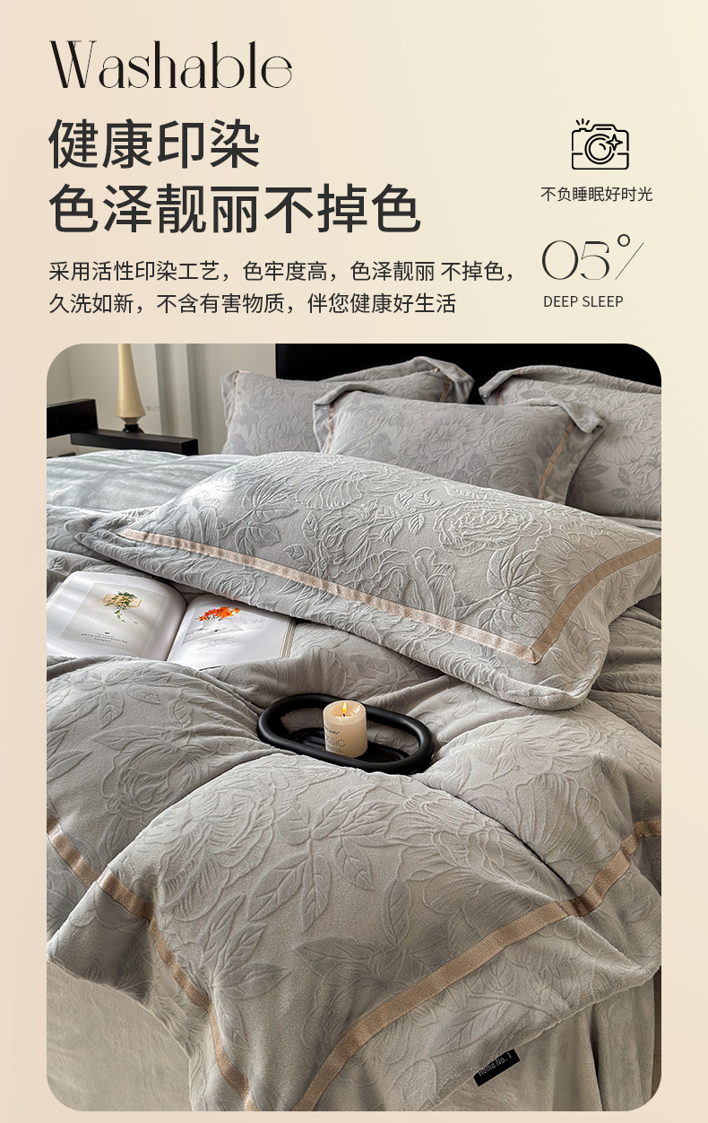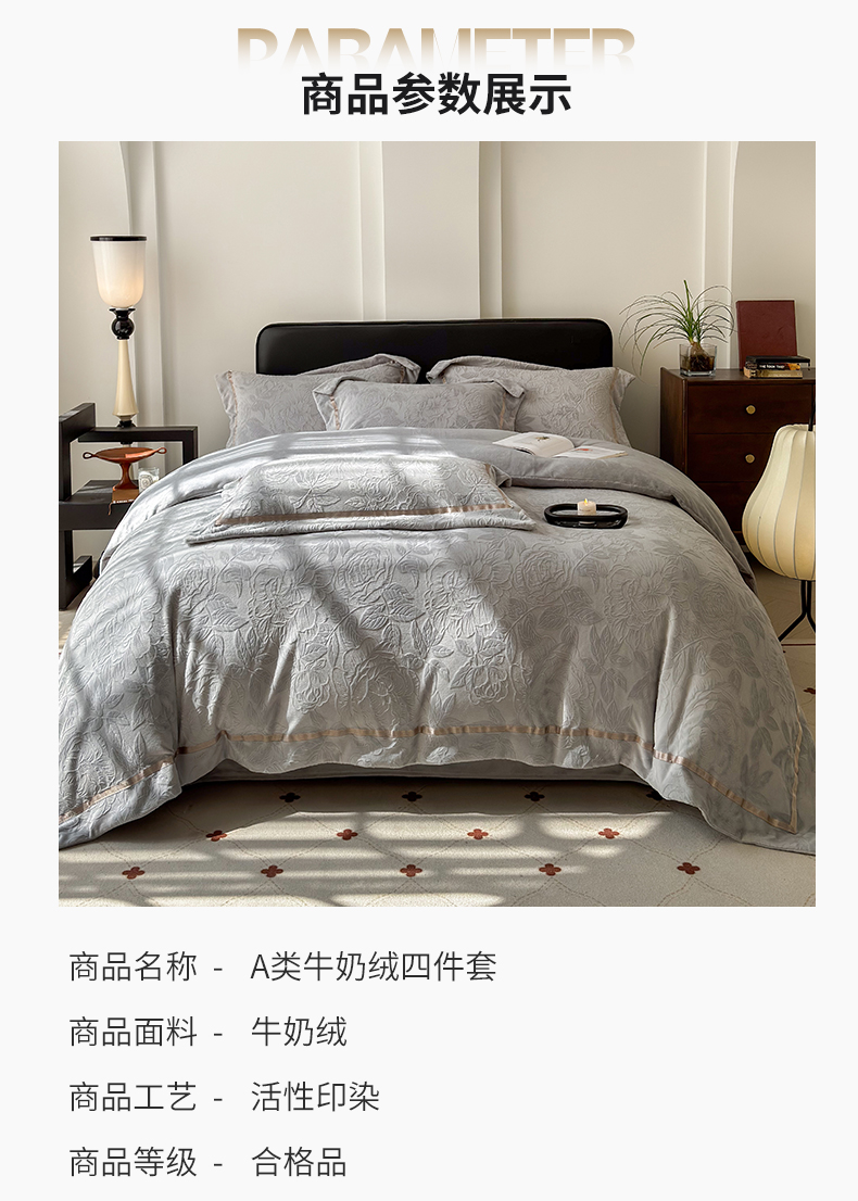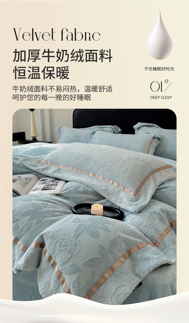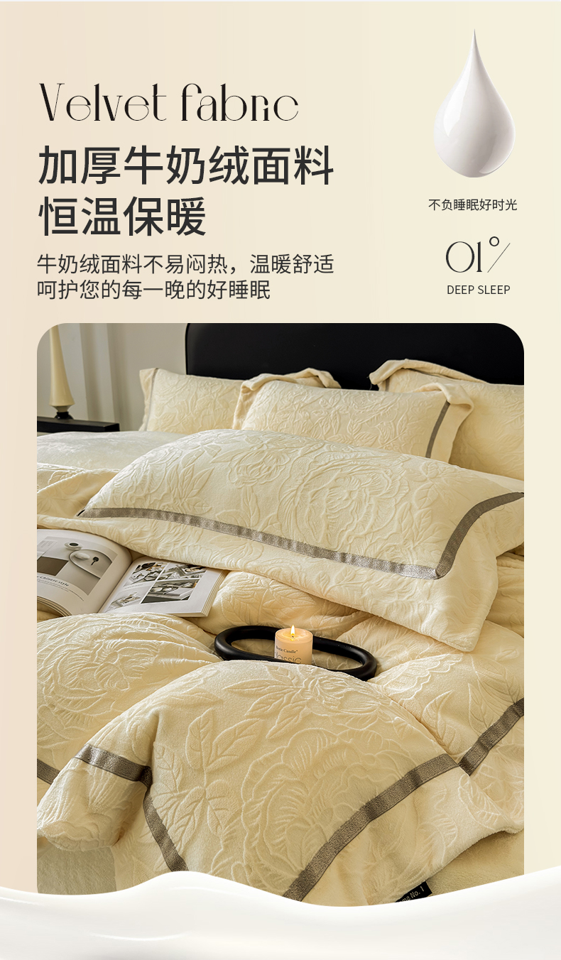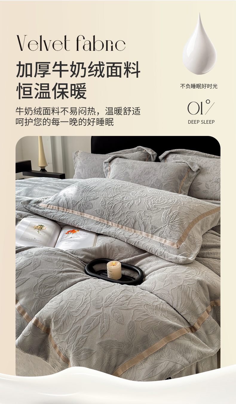 (总)家居1号家纺 2025新款230克全消光瑞丽牛奶绒烂花四件套(控价标准258加大278 会员优惠10元),瑞丽-卡其,瑞丽-苹果绿,瑞丽-绅士灰,瑞丽-温馨蓝,瑞丽-雅粉,瑞丽-优雅紫