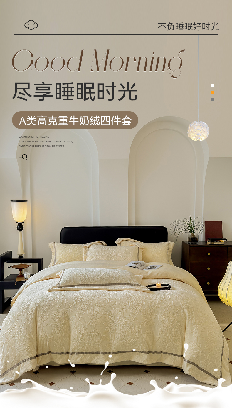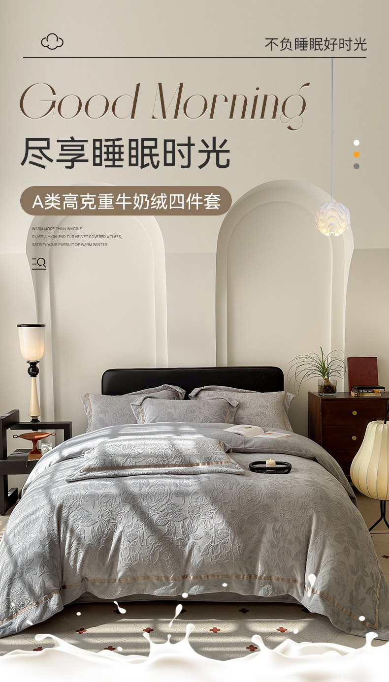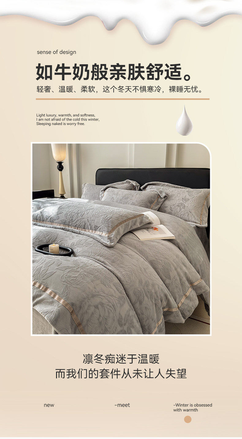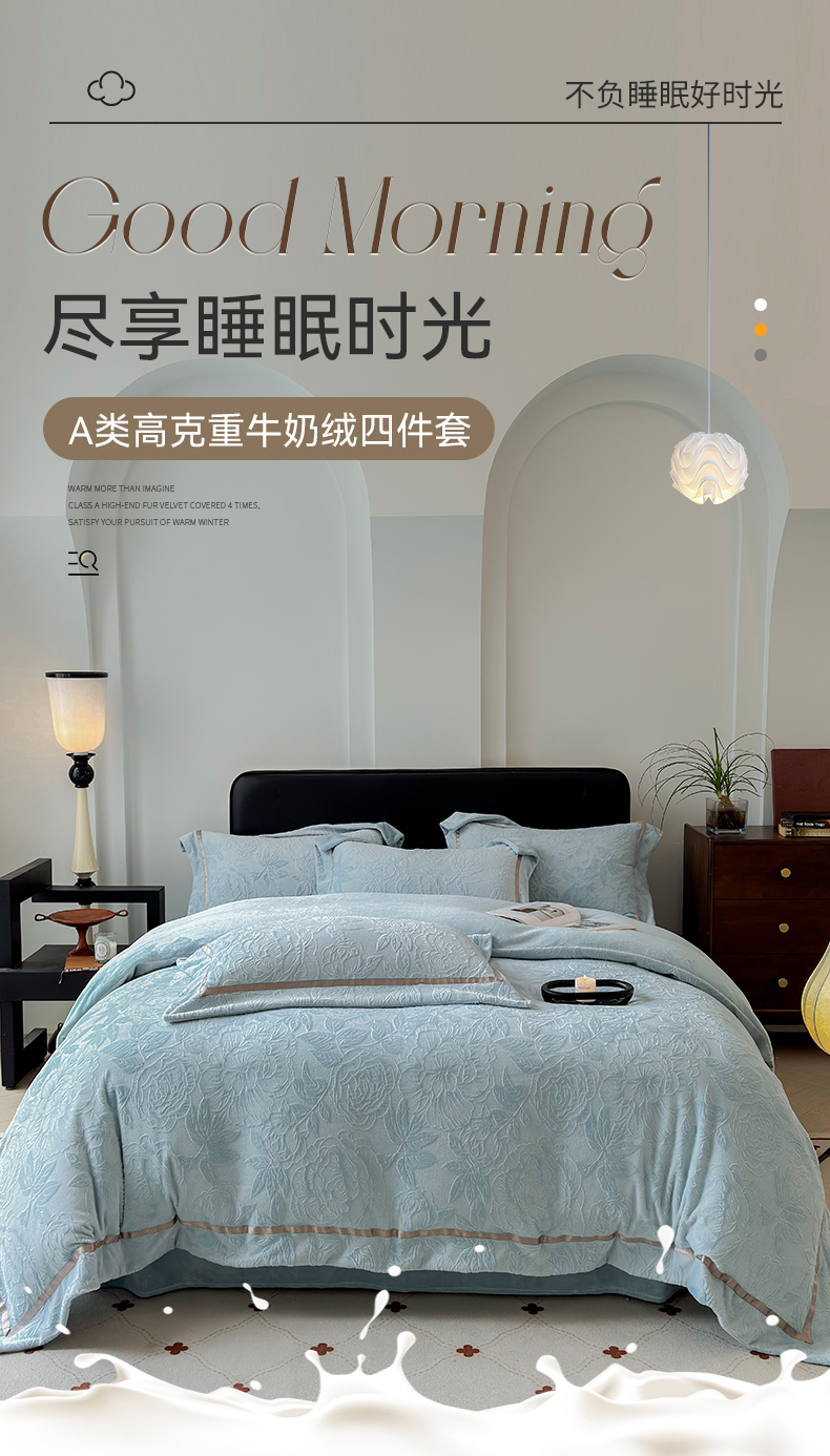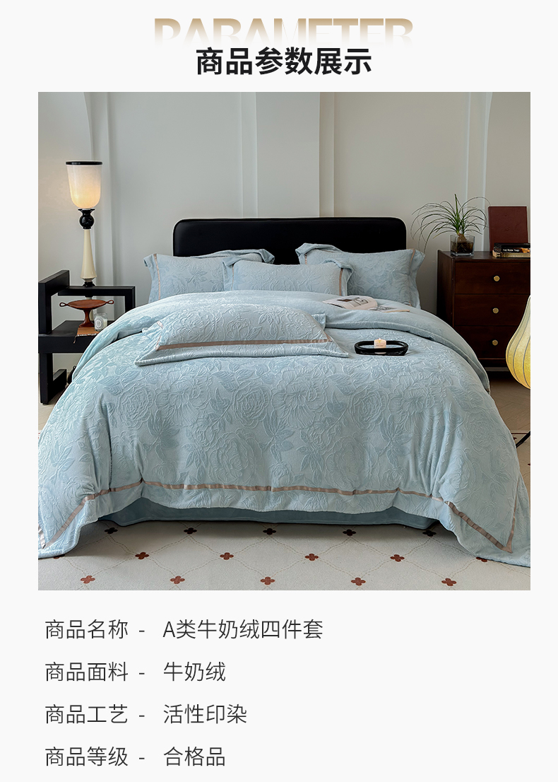 (总)家居1号家纺 2025新款230克全消光瑞丽牛奶绒烂花四件套(控价标准258加大278 会员优惠10元),瑞丽-卡其,瑞丽-苹果绿,瑞丽-绅士灰,瑞丽-温馨蓝,瑞丽-雅粉,瑞丽-优雅紫