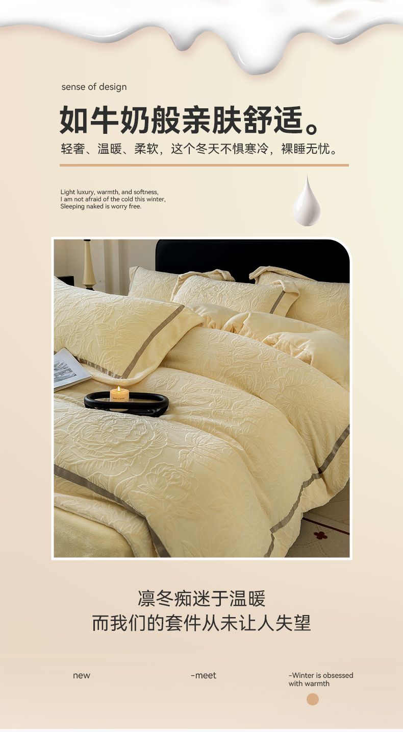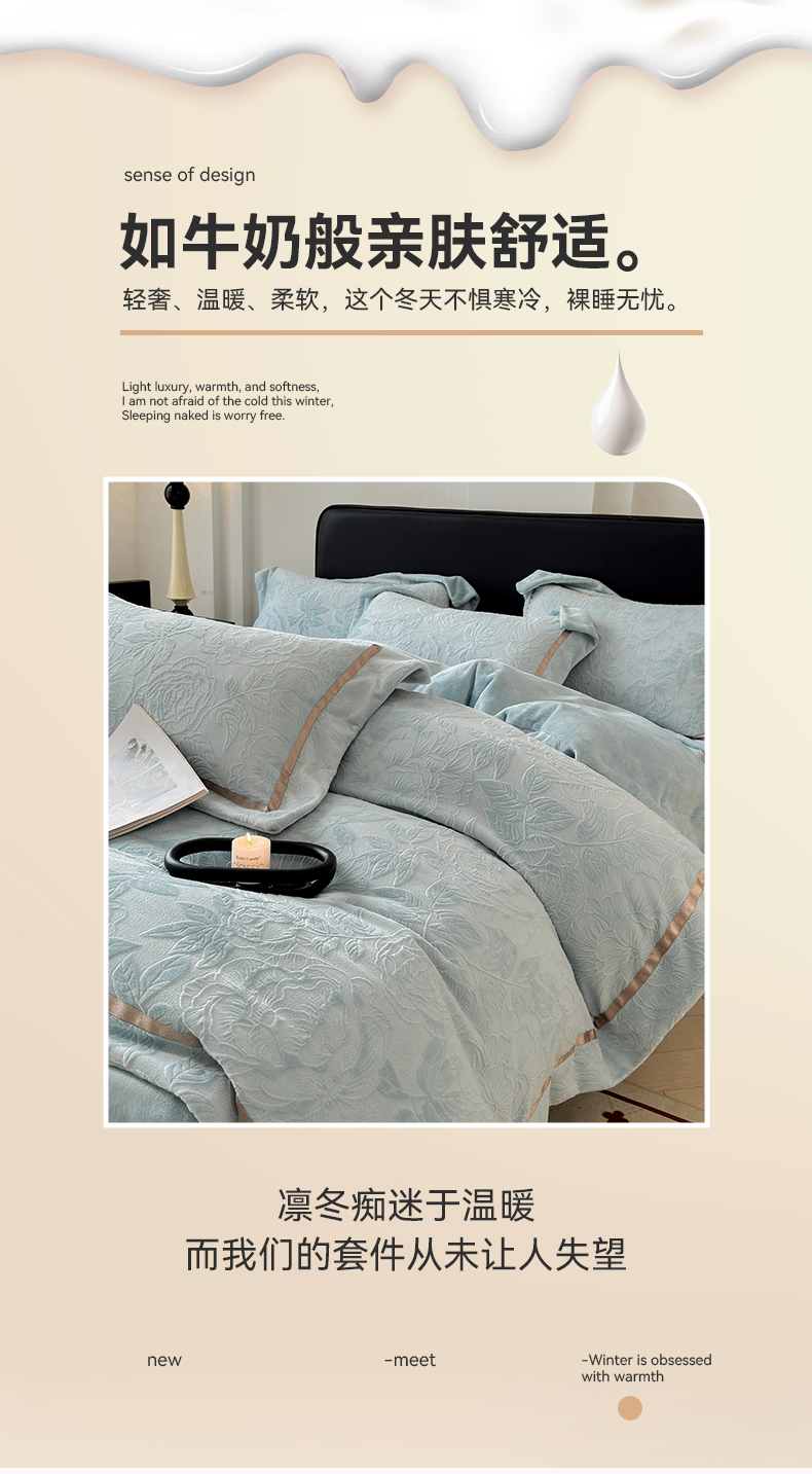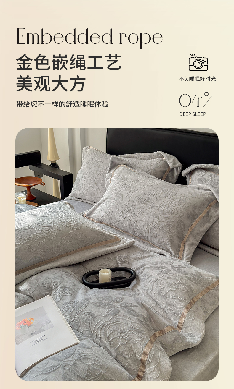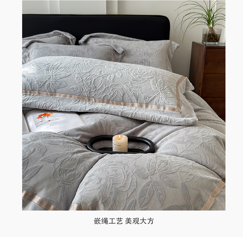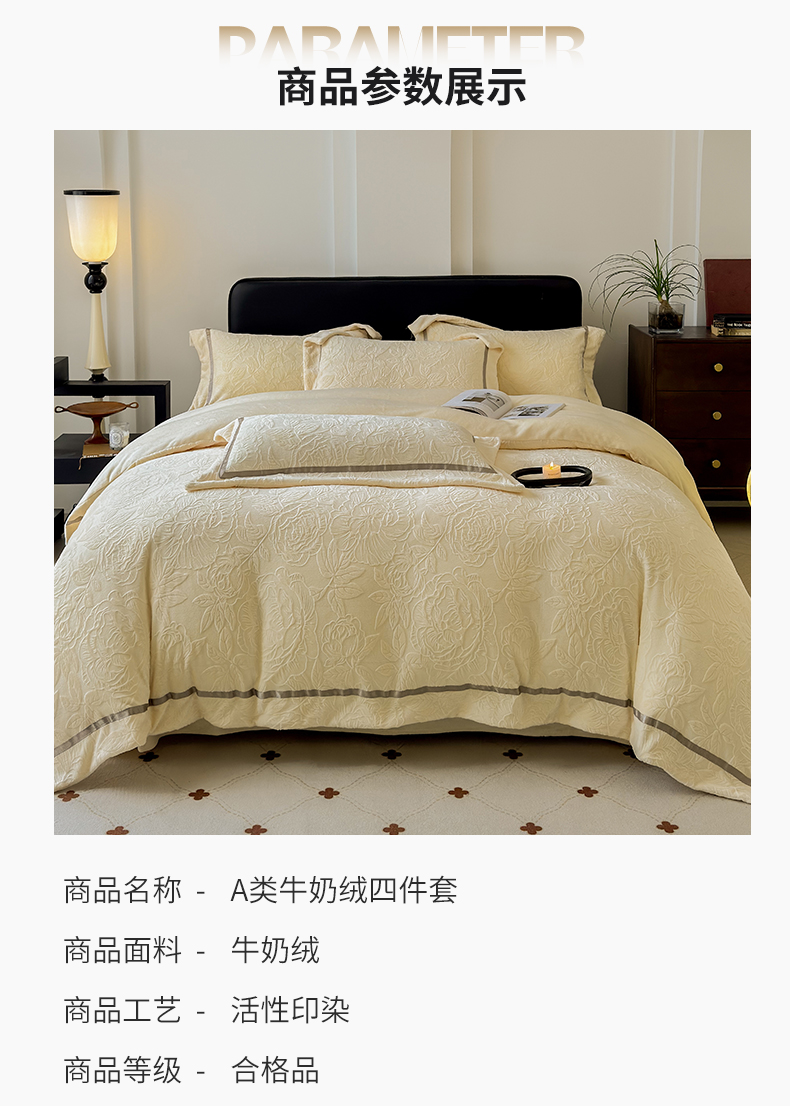 (总)家居1号家纺 2025新款230克全消光瑞丽牛奶绒烂花四件套(控价标准258加大278 会员优惠10元),瑞丽-卡其,瑞丽-苹果绿,瑞丽-绅士灰,瑞丽-温馨蓝,瑞丽-雅粉,瑞丽-优雅紫