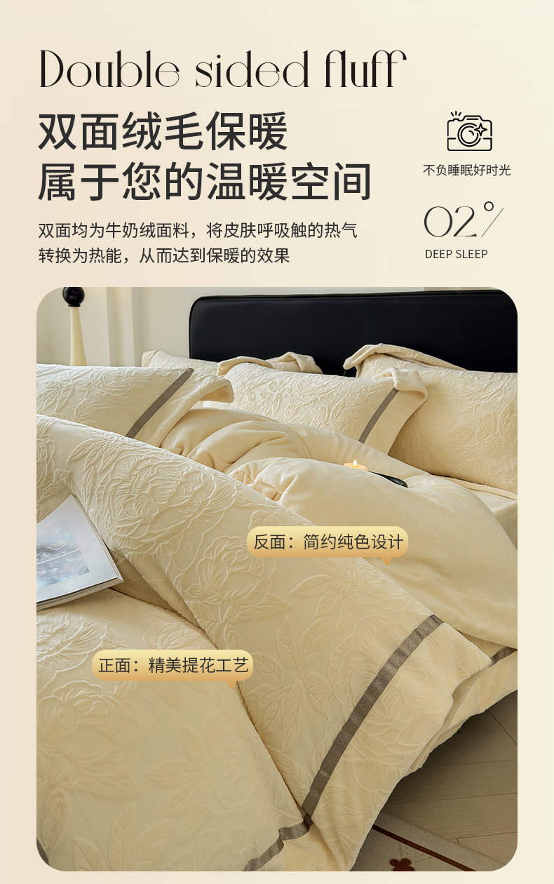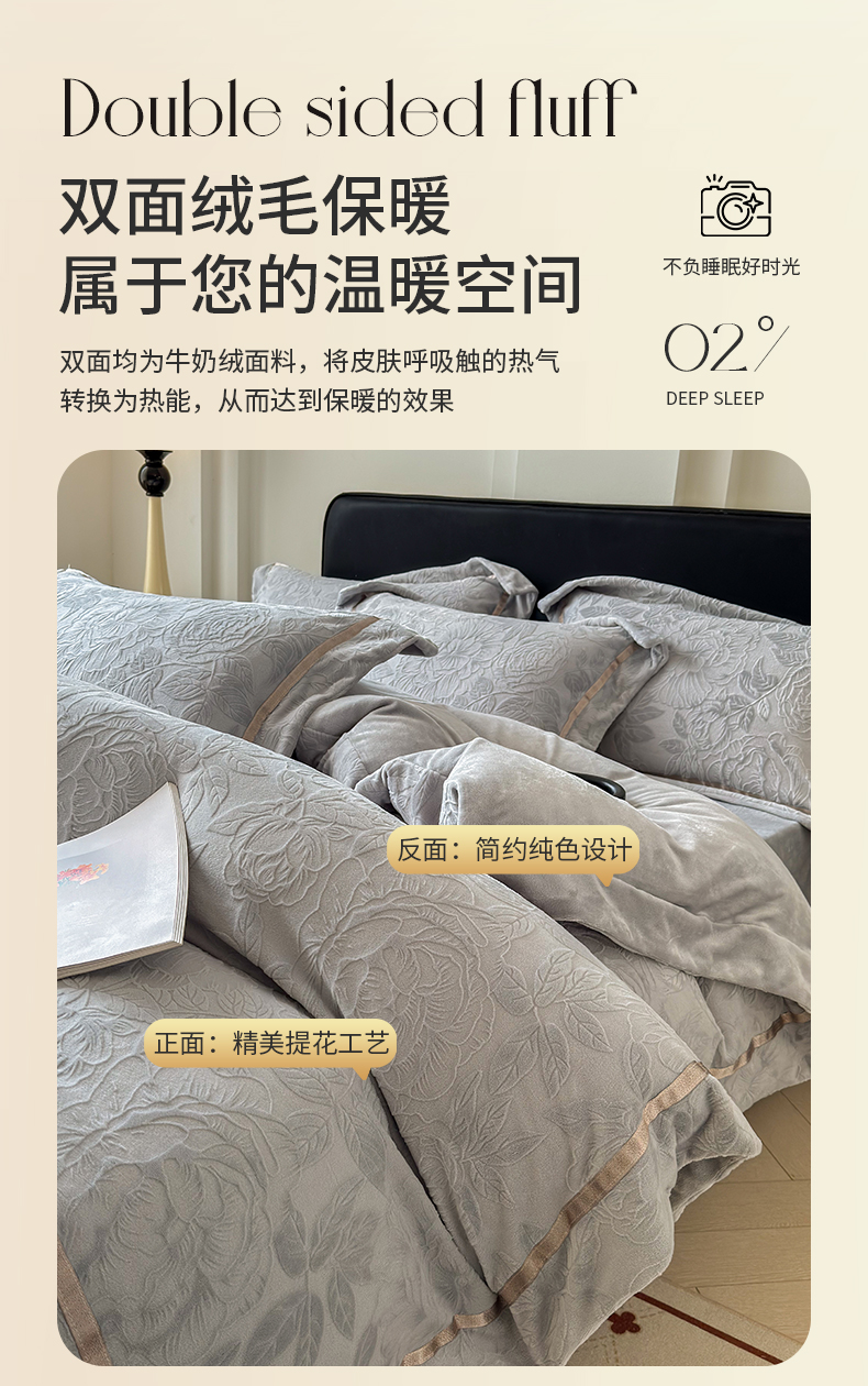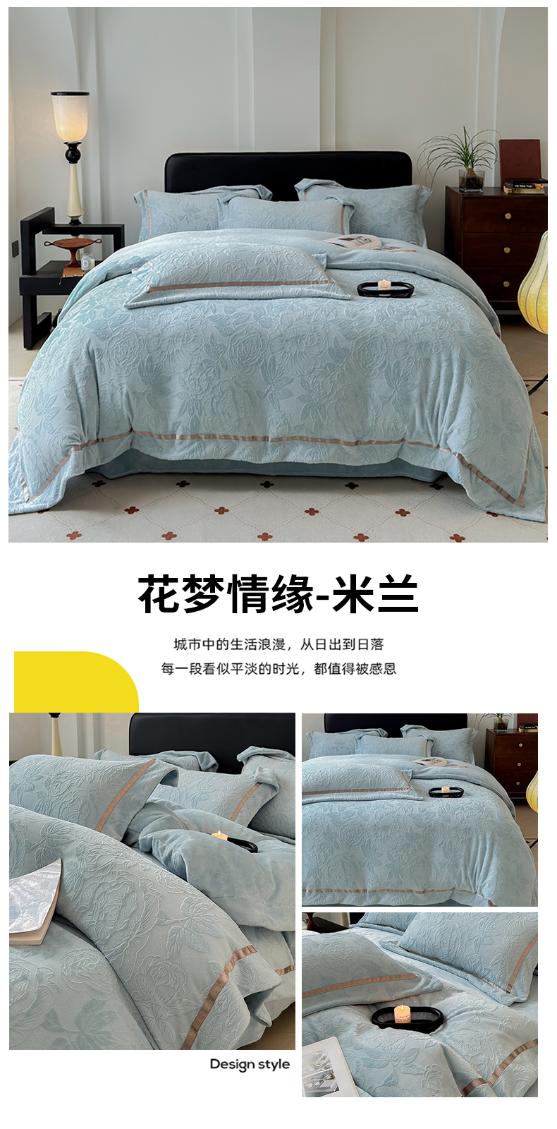 商品名称:家居1号家纺 2024新款230克牛奶绒四件套-花梦情缘 花梦情缘-米兰
