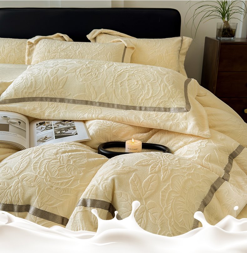 家居1号家纺 2024新款230克牛奶绒四件套-花梦情缘 花梦情缘-米兰