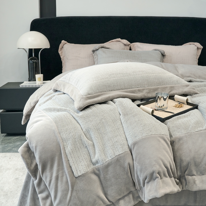 榻尚家居 2024秋冬新品 加厚保暖牛奶婴肤绒 云貂绒四件套 水貂绒-灰色