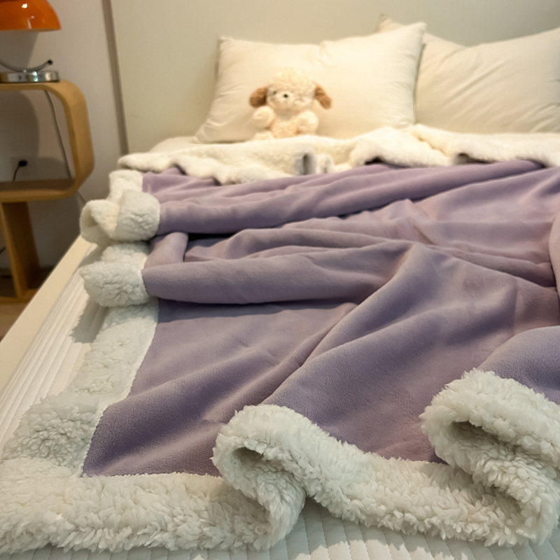 商品名称:盼季家纺 2024新款ins风博主风羊羔绒毛毯加厚保暖牛奶绒毯子单人办公午睡毯-风格二 羊羔绒毛毯-奶蓝