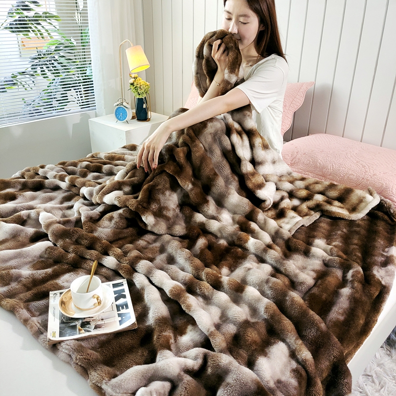 美洲琳 2025新款印花拼色泡泡绒毯-流云溢彩 深咖