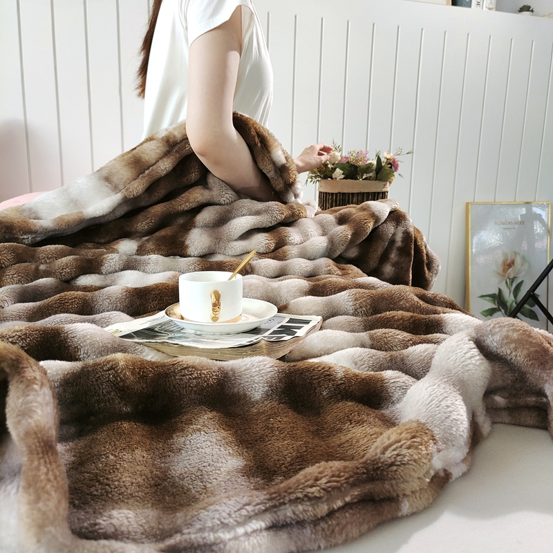 商品名称:美洲琳 2025新款印花拼色泡泡绒毯-流云溢彩 深咖