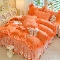 商品名称:2025秋冬新款230g全消光牛奶绒床裙款四件套纯色蕾丝花边刺绣蕾丝床裙款床盖款法式蕾丝公主粉奶油风四件套 甜心--艾玛橙