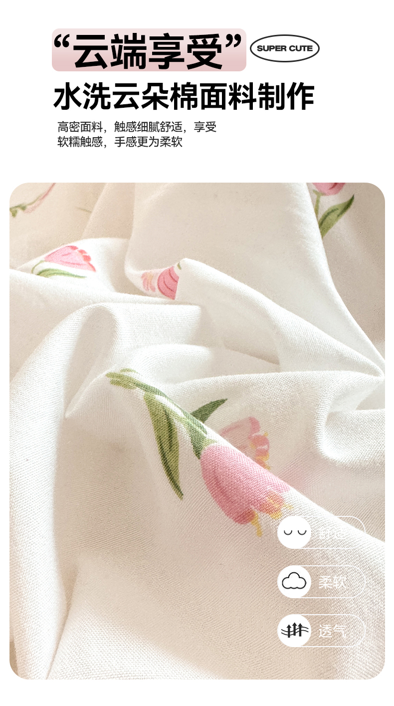 当前位置: 91家纺网 > 商品网购 > 床品套件 > 四件套 > 其它四件套 > 多品家纺 2025新款超柔水洗软糯云朵棉四件套 朵朵郁金香