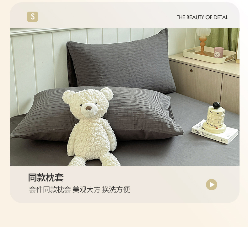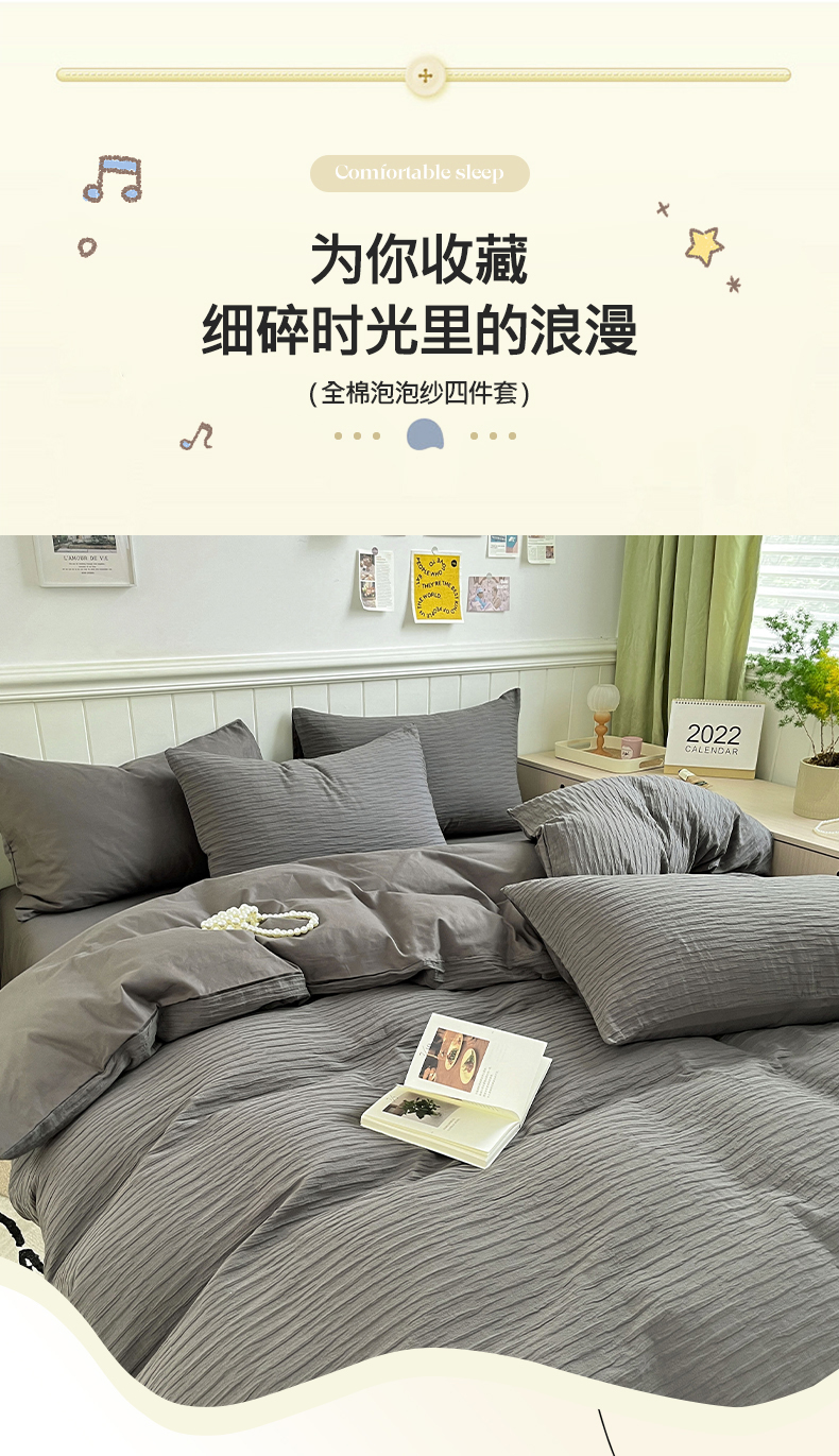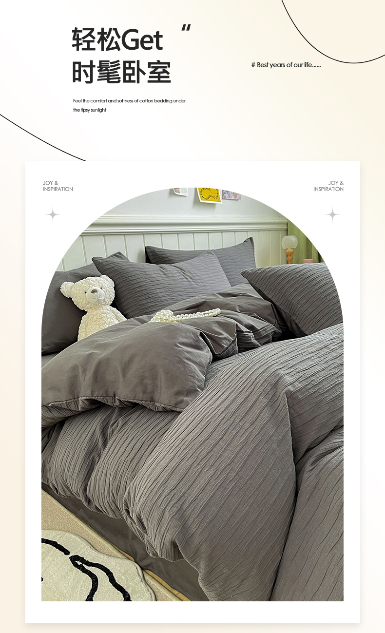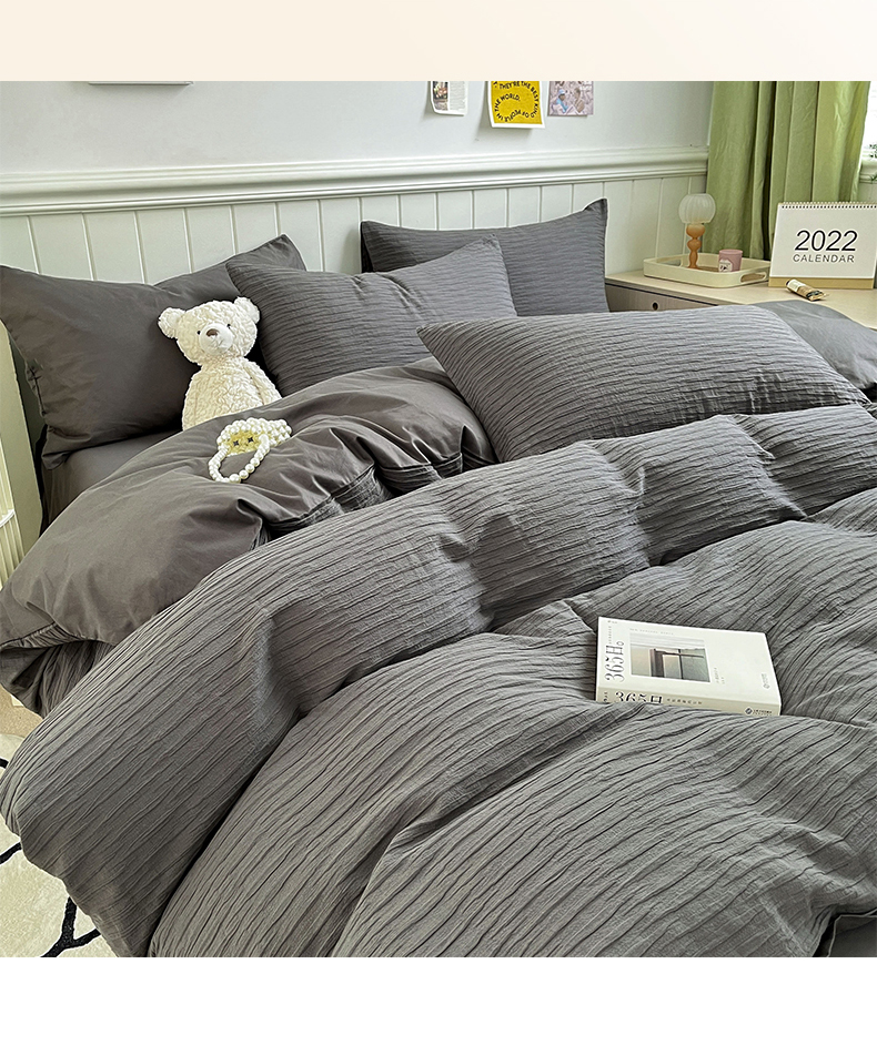 商品名称:雅居纺家纺 2025新款全棉泡泡纱四件套 泡泡纱黑茶