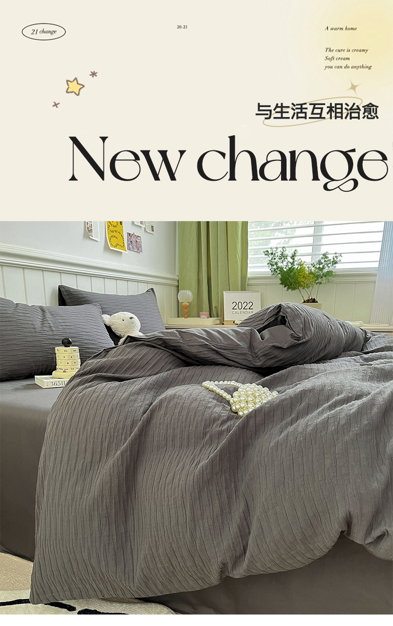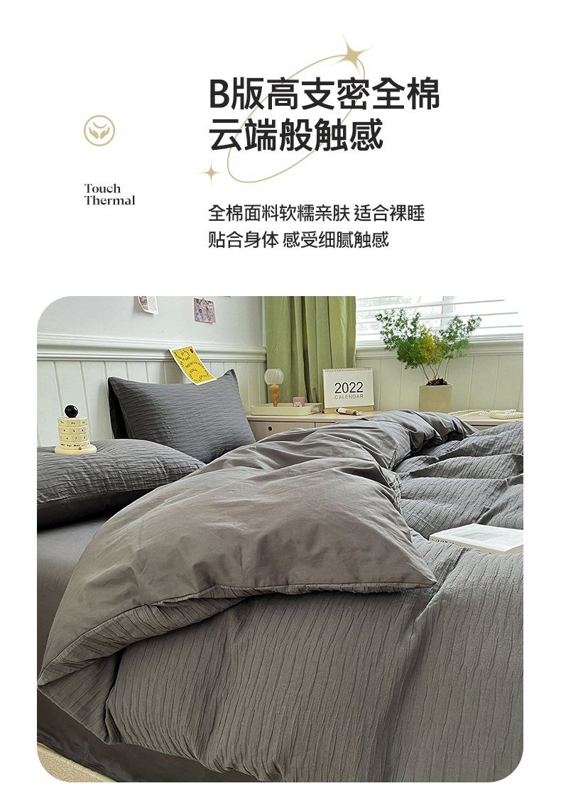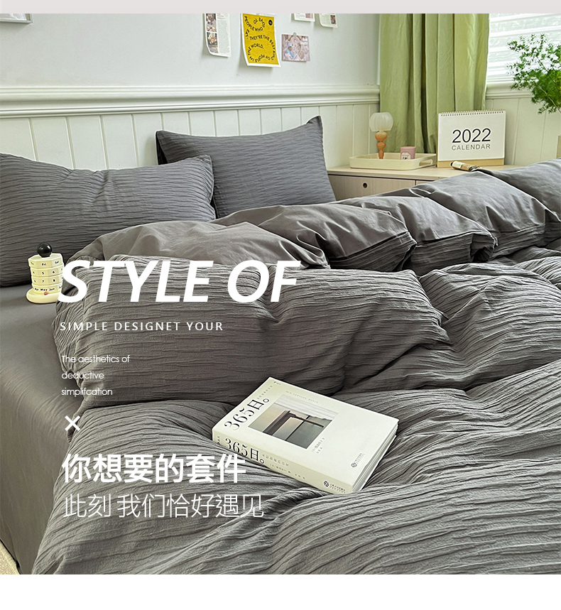(总)雅居纺家纺 2022新款全棉华夫格普通款四件套,焦糖,米驼,奶油白,柔粉,深灰,雾蓝,月灰