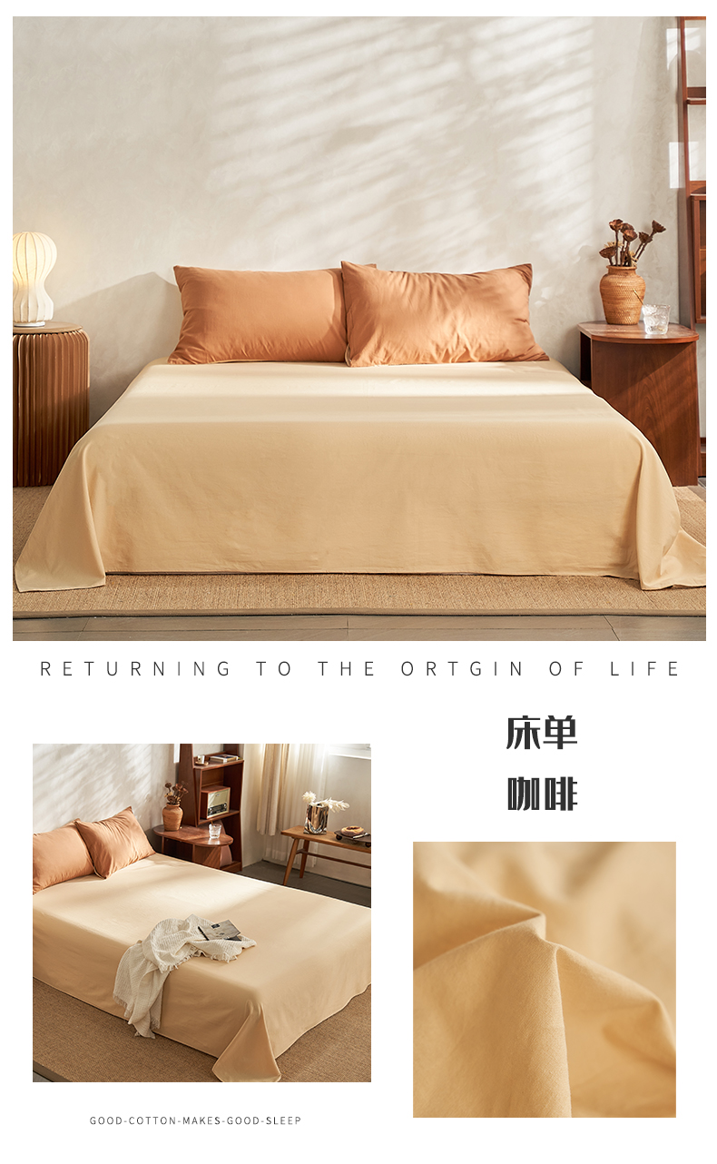 商品名称:雅居纺家纺 2025新款全棉素色水洗棉单床单 咖啡