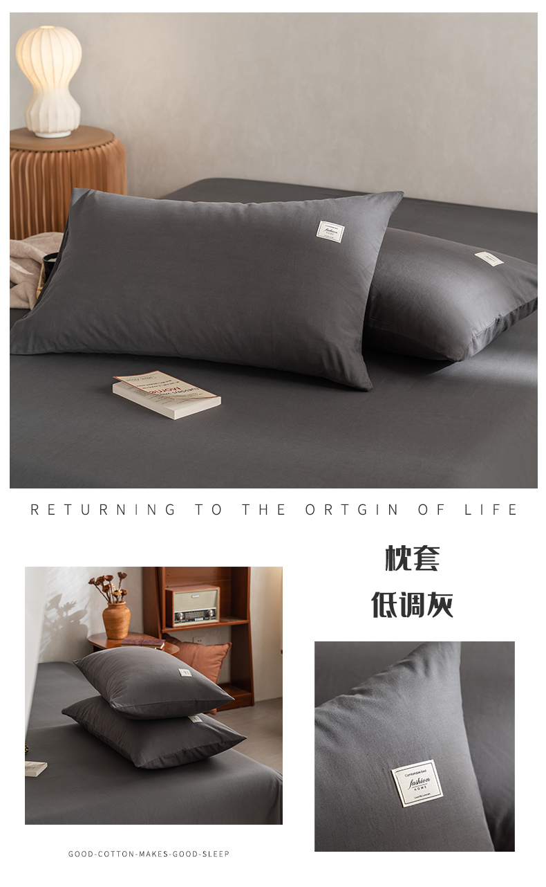 商品名称:雅居纺家纺 2025新款全棉素色水洗棉单枕套 低调灰