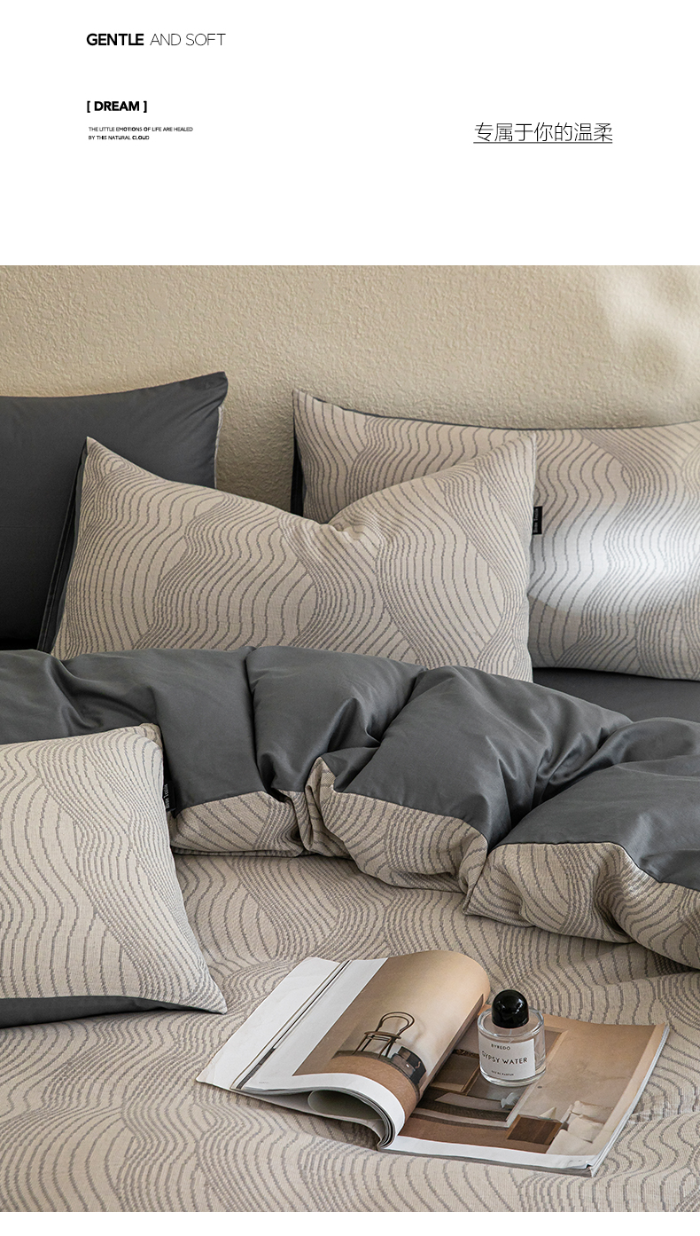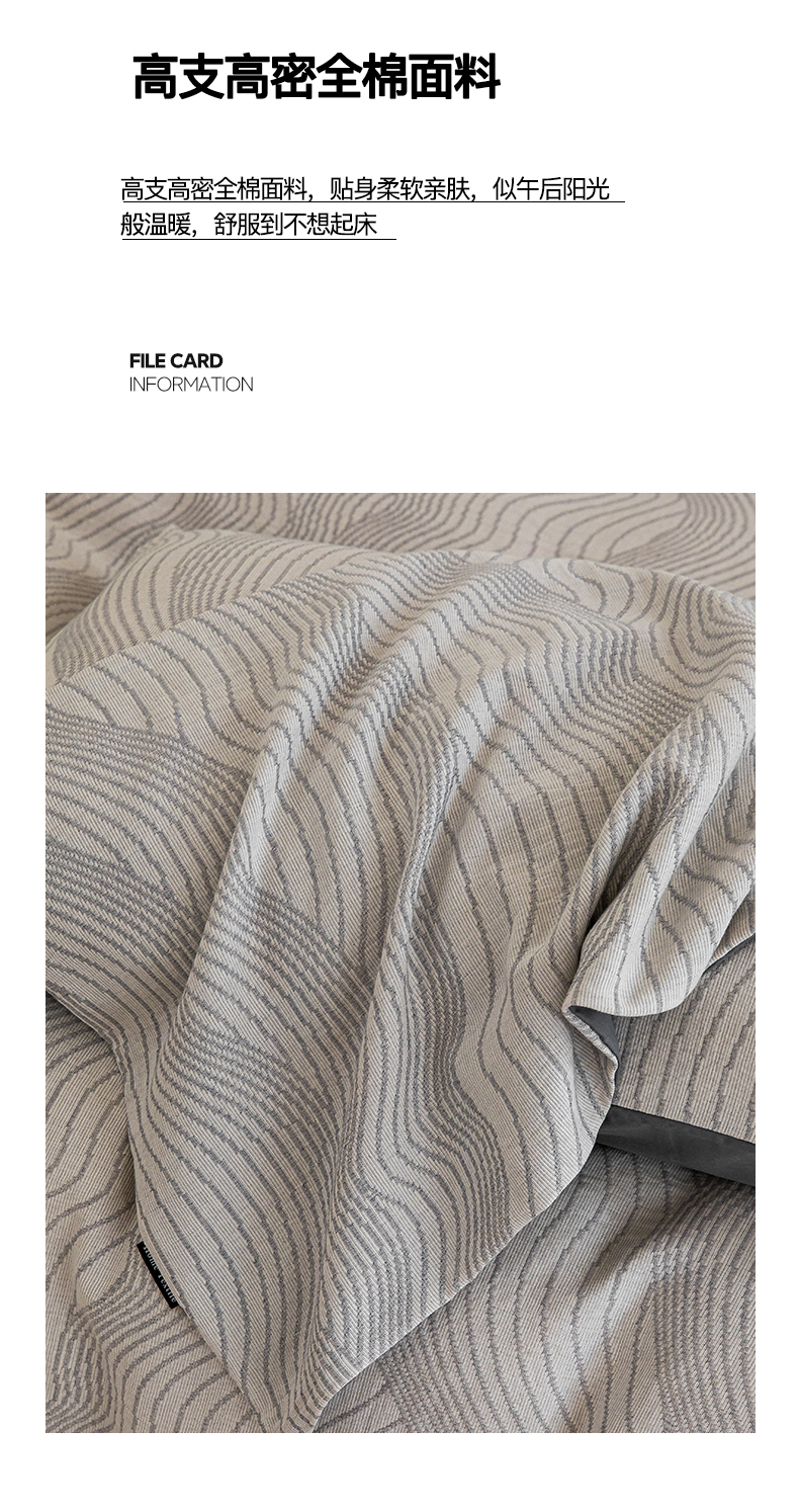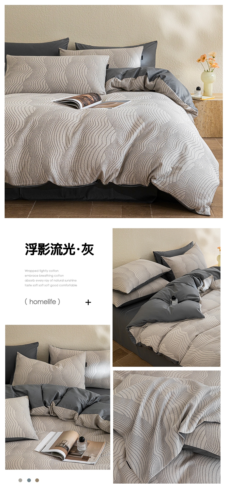 商品名称:典曼家纺 2025新款A类三层纱大提花四件套 浮影流光-灰