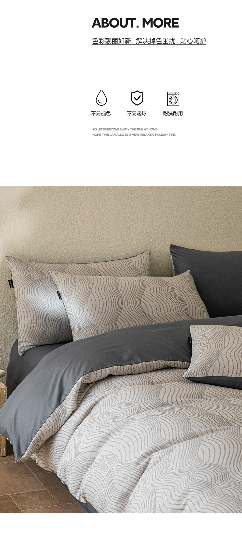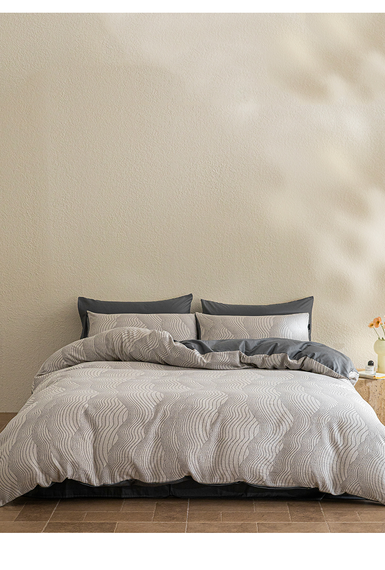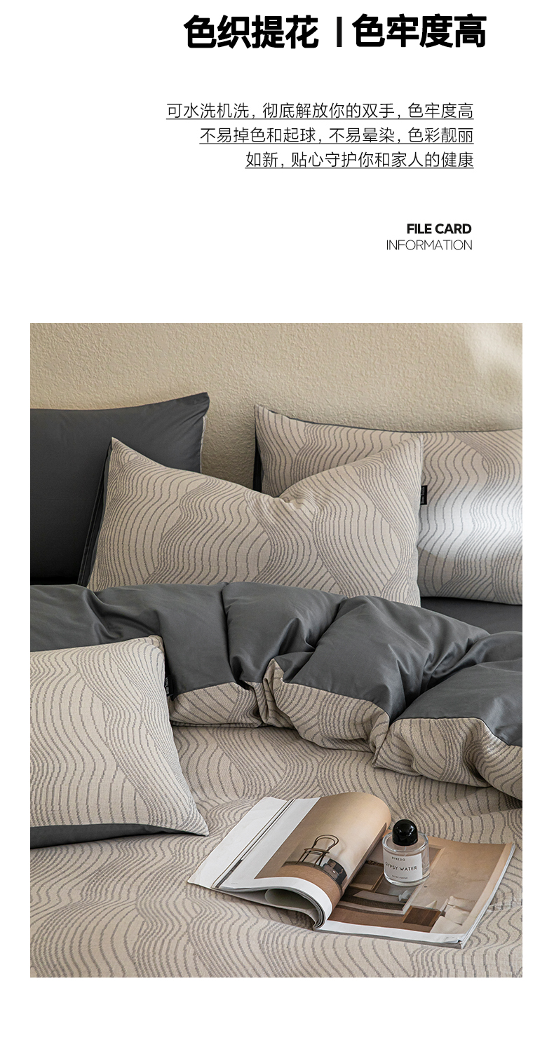 商品名称:典曼家纺 2025新款A类三层纱大提花四件套 浮影流光-灰