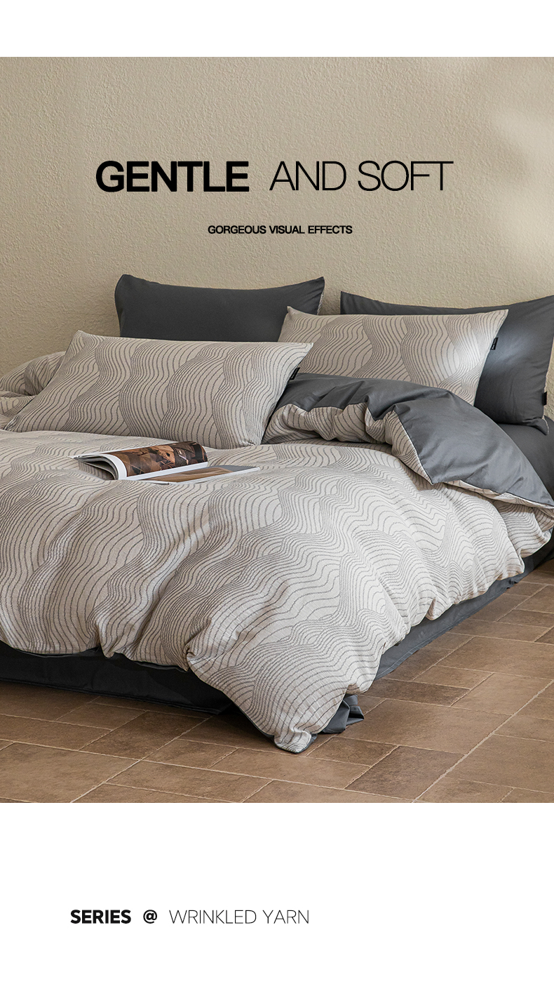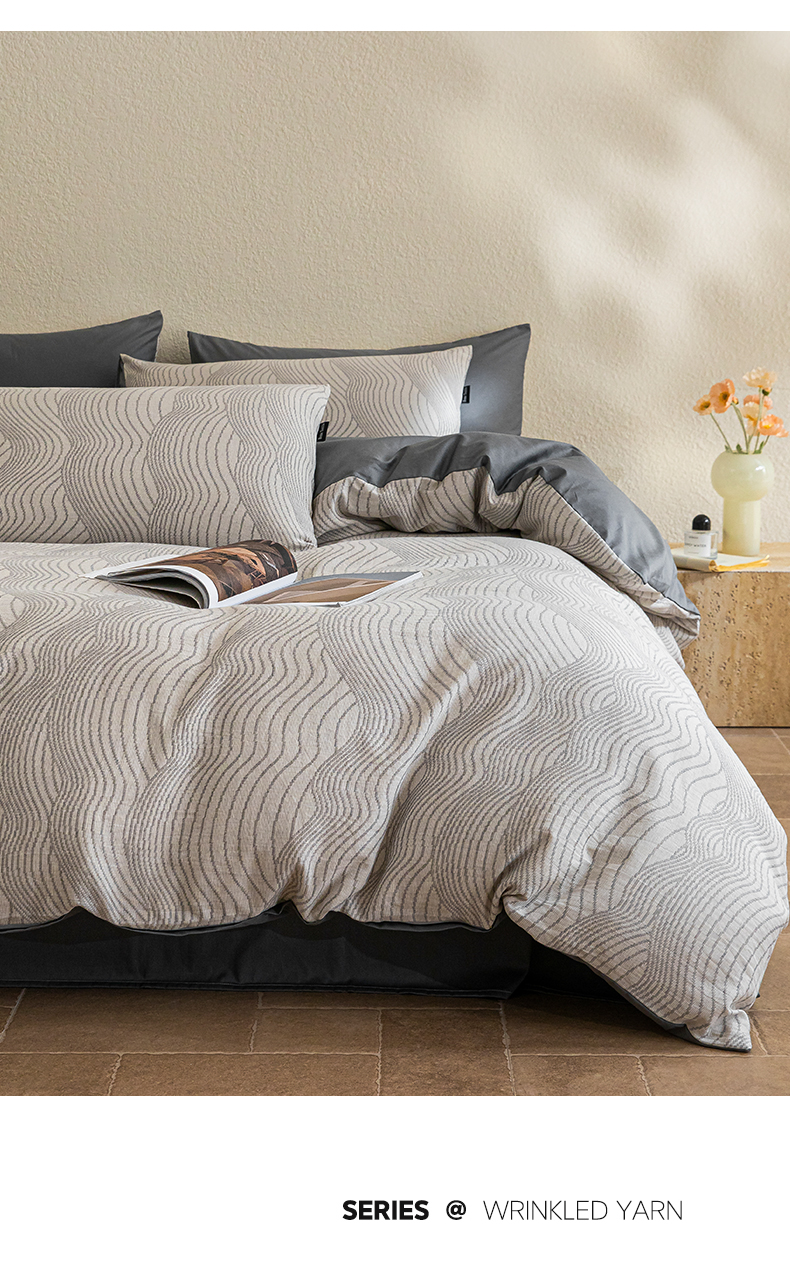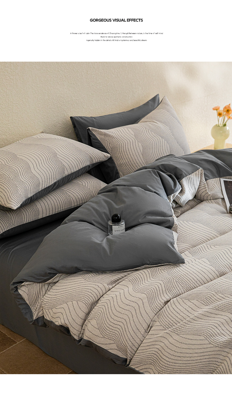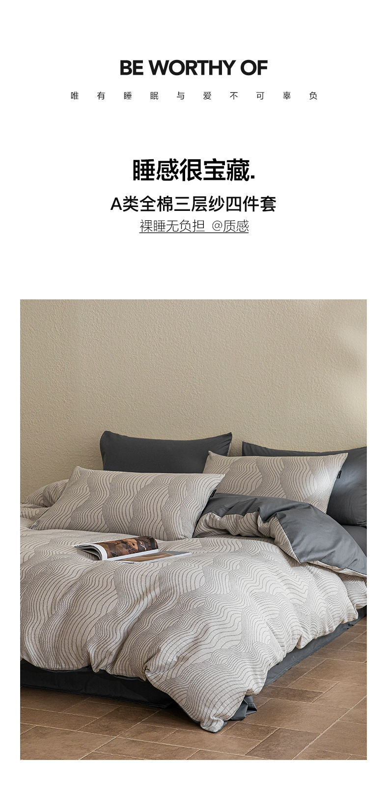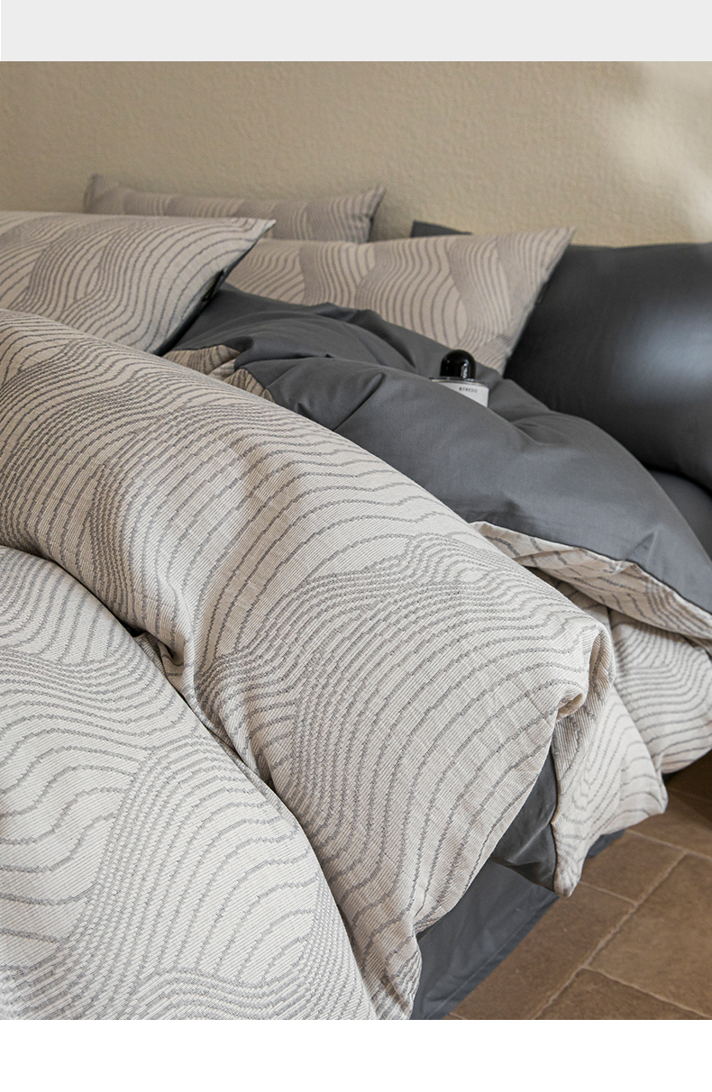 典曼家纺 2025新款A类三层纱大提花四件套 浮影流光-灰