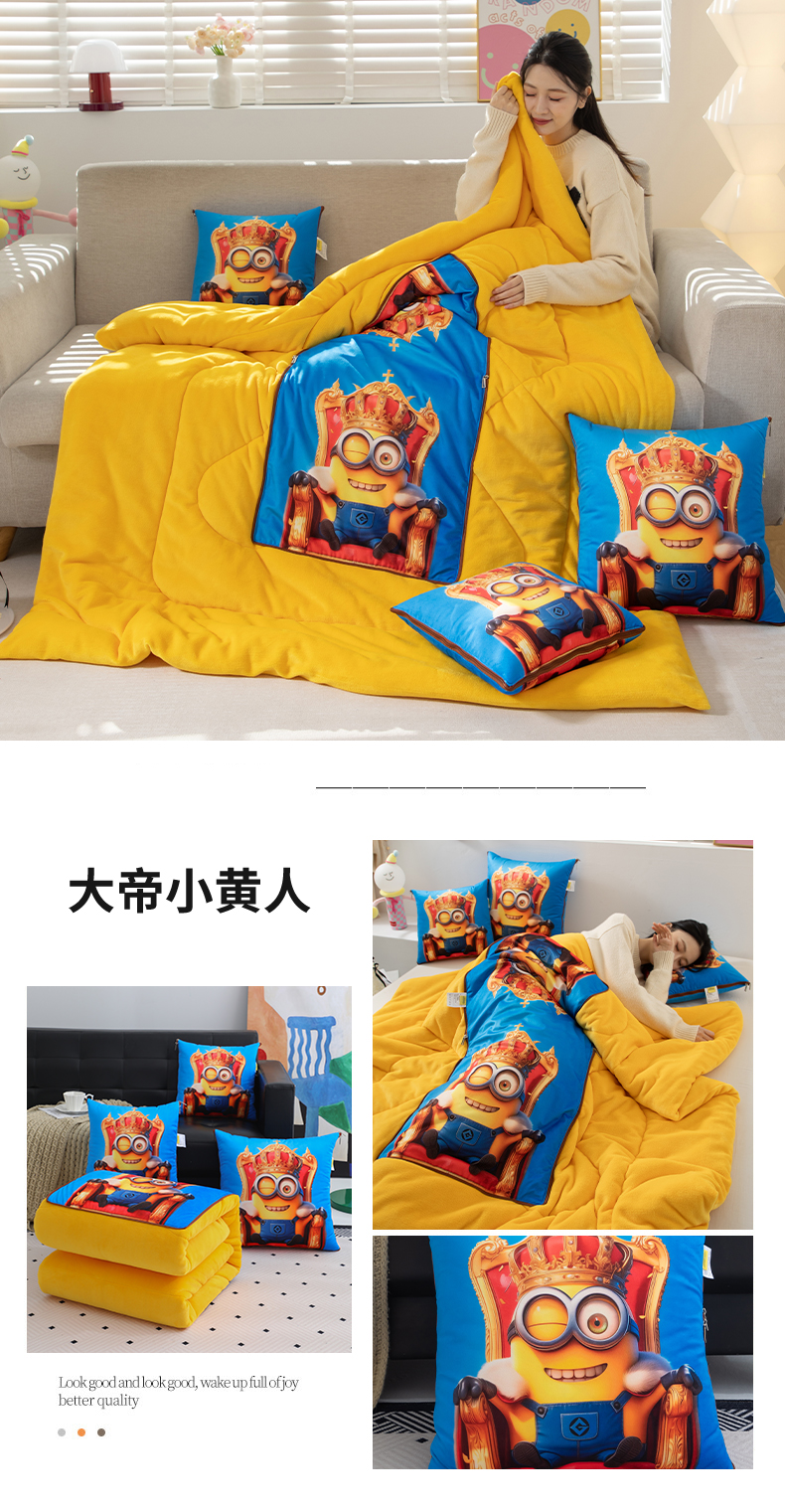 商品名称:宝马家纺(原梦童画) 2025新款小黄人牛奶绒数码印花抱枕被 大帝小黄人