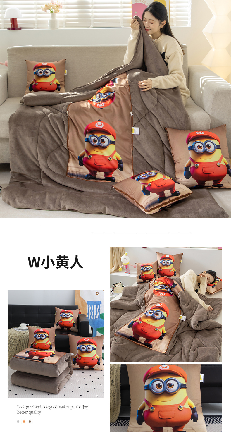 宝马家纺(原梦童画) 2025新款小黄人牛奶绒数码印花抱枕被 W小黄人