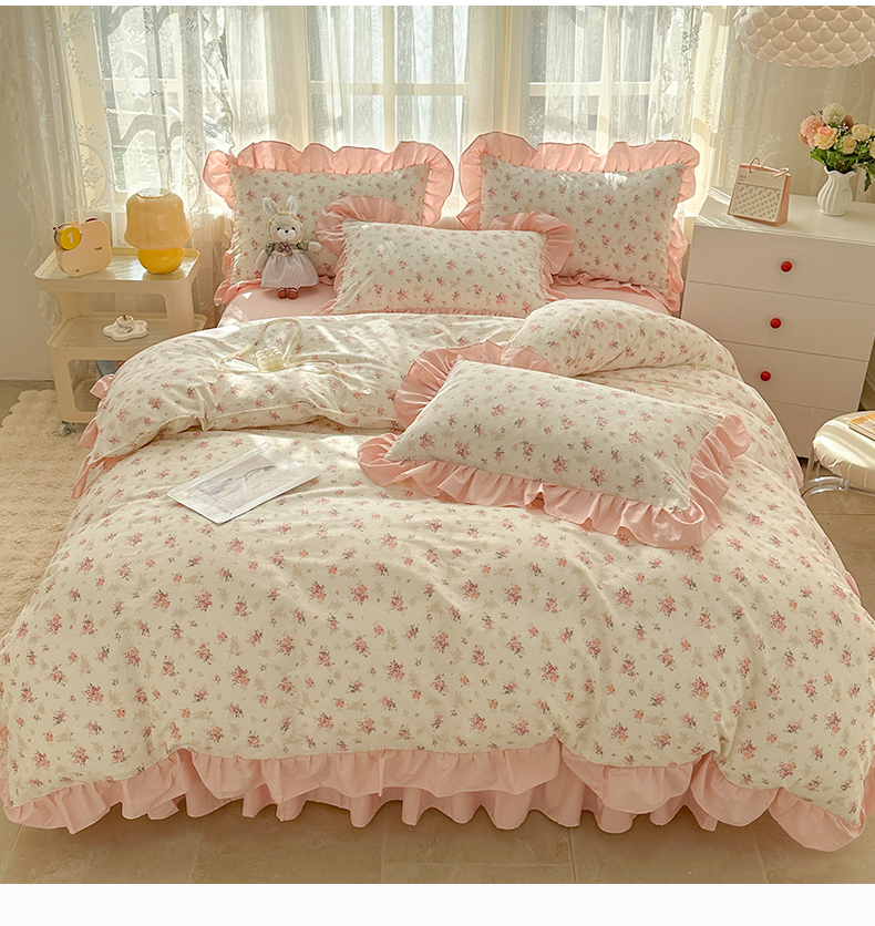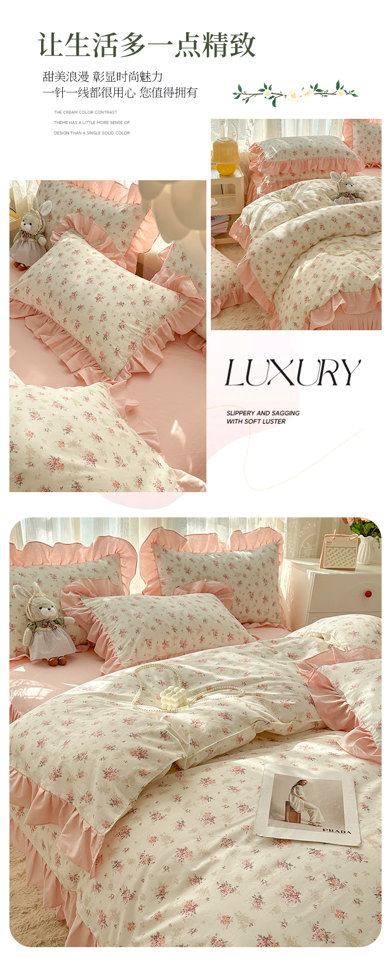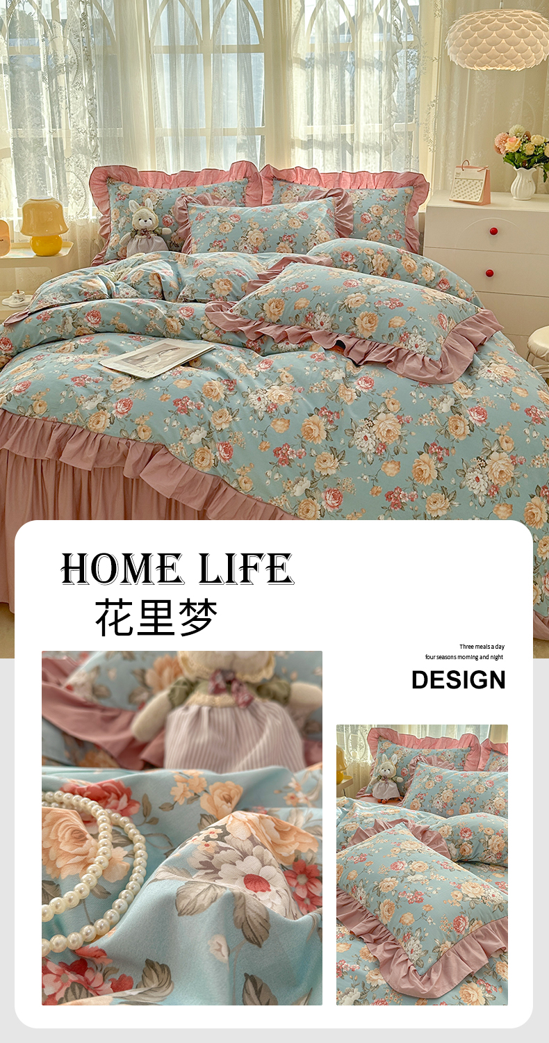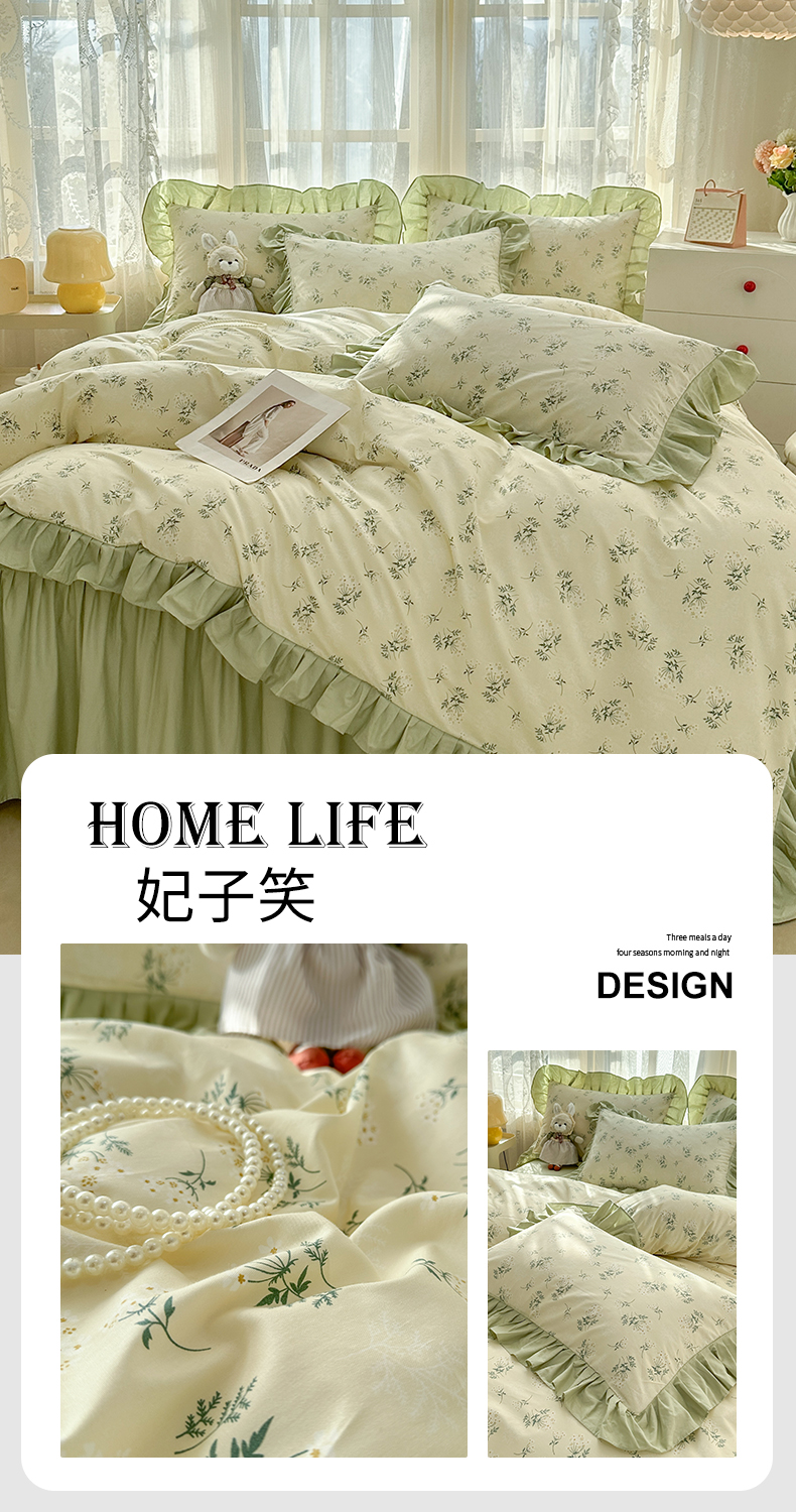 (总)忘忧草 2025新款全棉133*72纯棉小清新床裙花边四件套