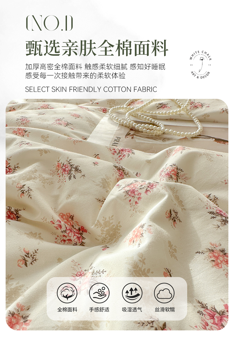 商品名称:(总)忘忧草 2025新款全棉133*72纯棉小清新床裙花边四件套