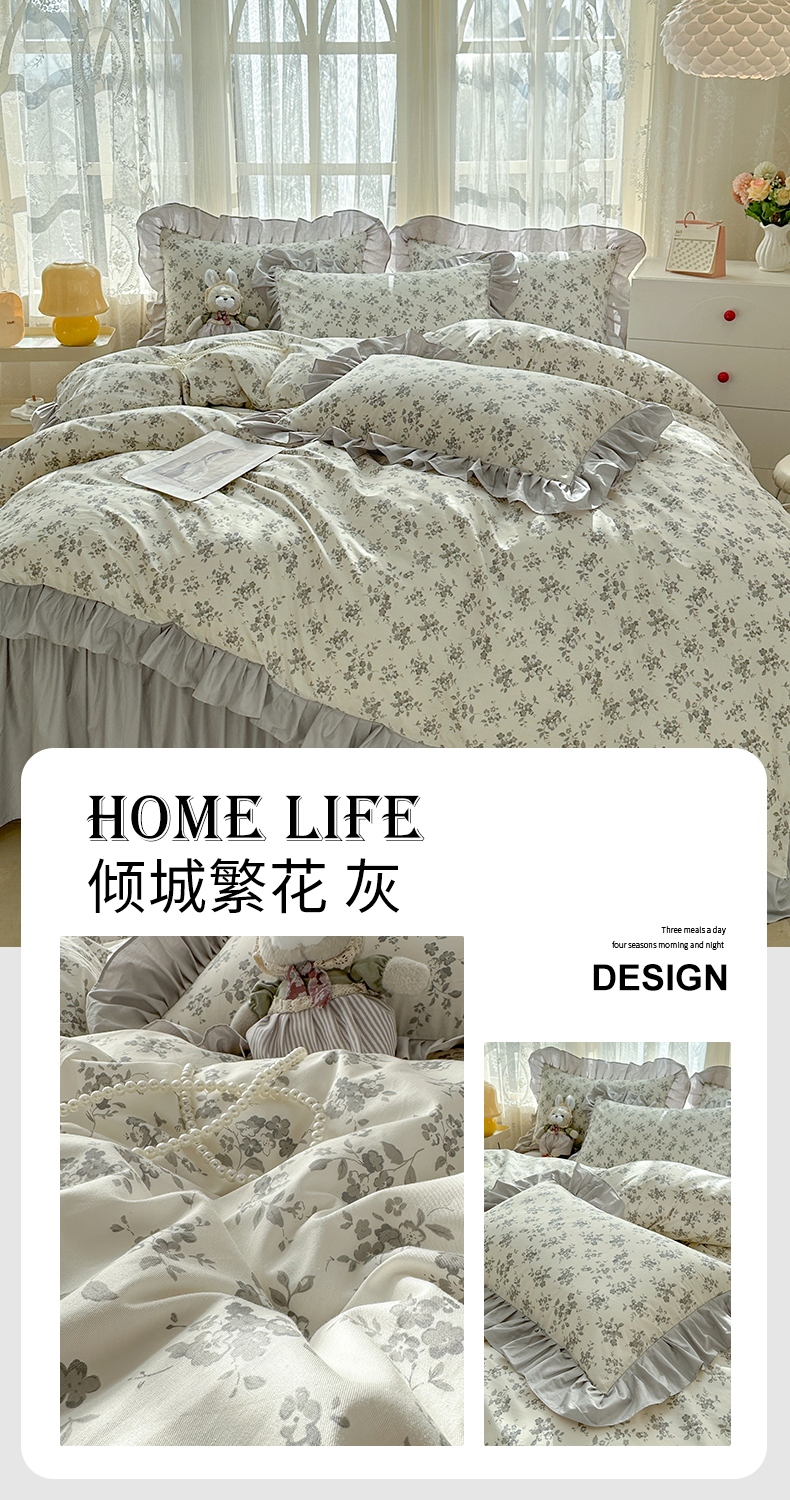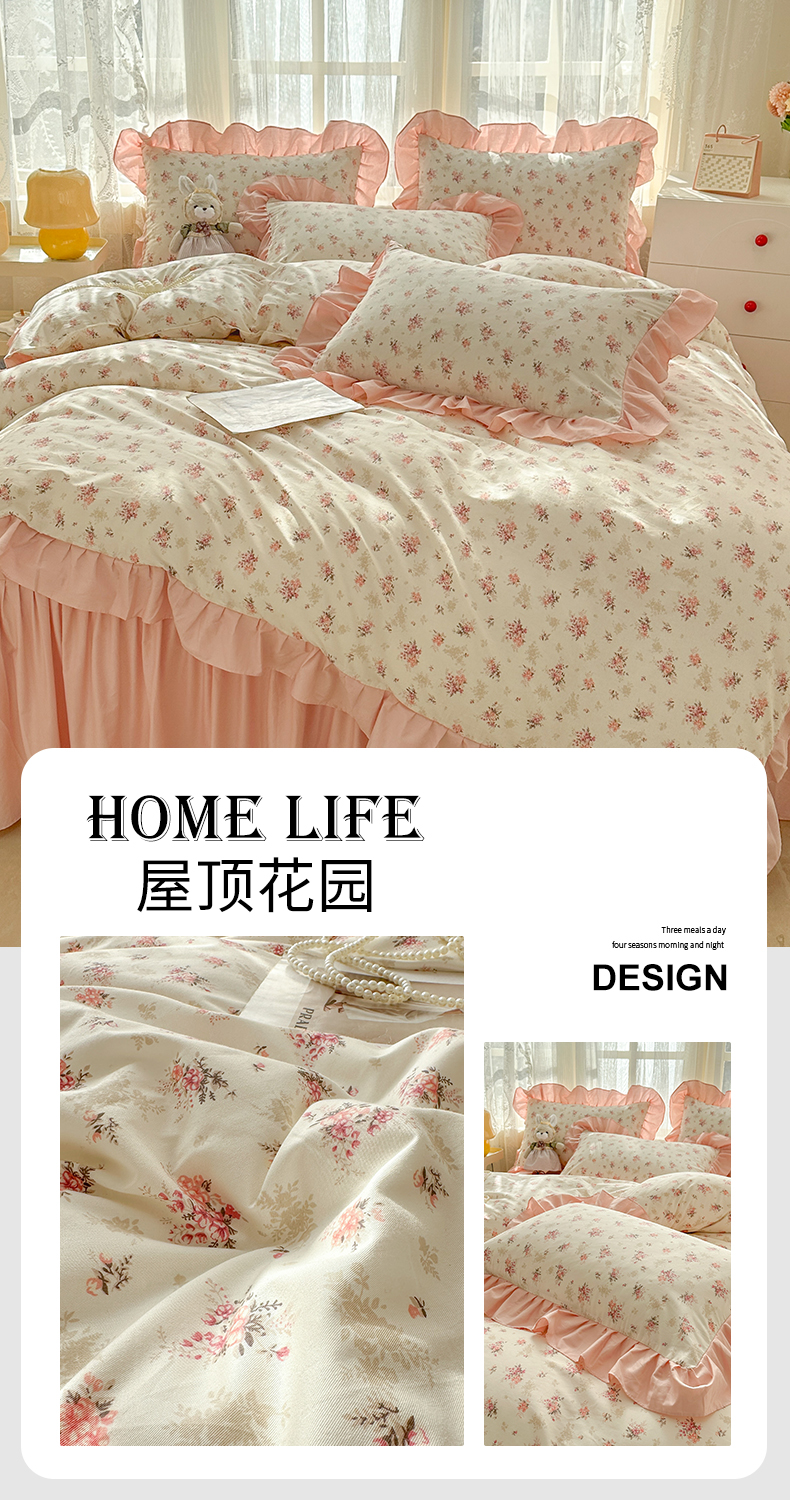 (总)忘忧草 2025新款全棉133*72纯棉小清新床裙花边四件套,妃子笑,花开满满,花里梦,卡芙卡,陌上花颜,倾城繁花 灰,倾城繁花 紫,森物语,屋顶花园,樱桃浪漫,遇见浪漫,云香
