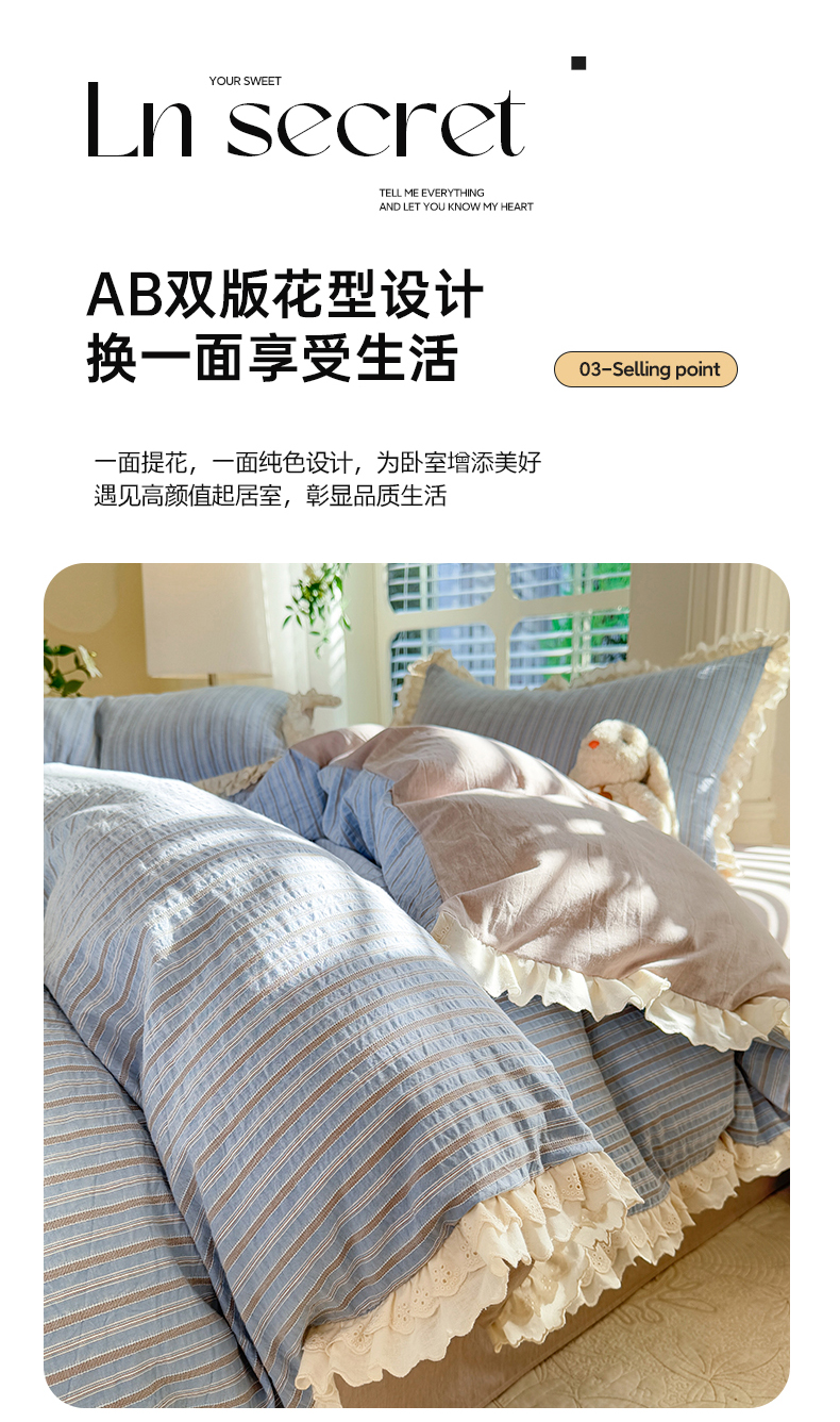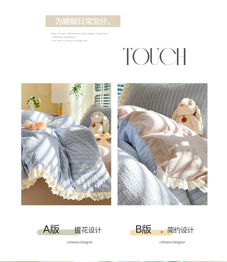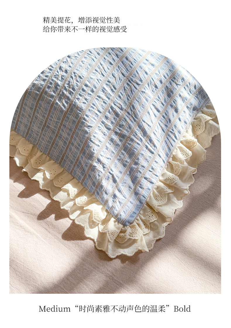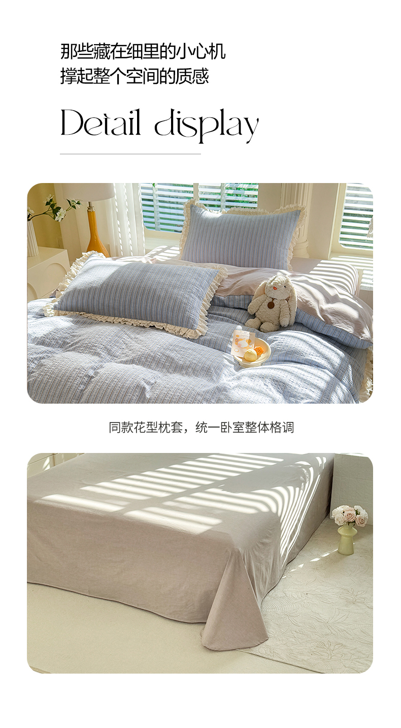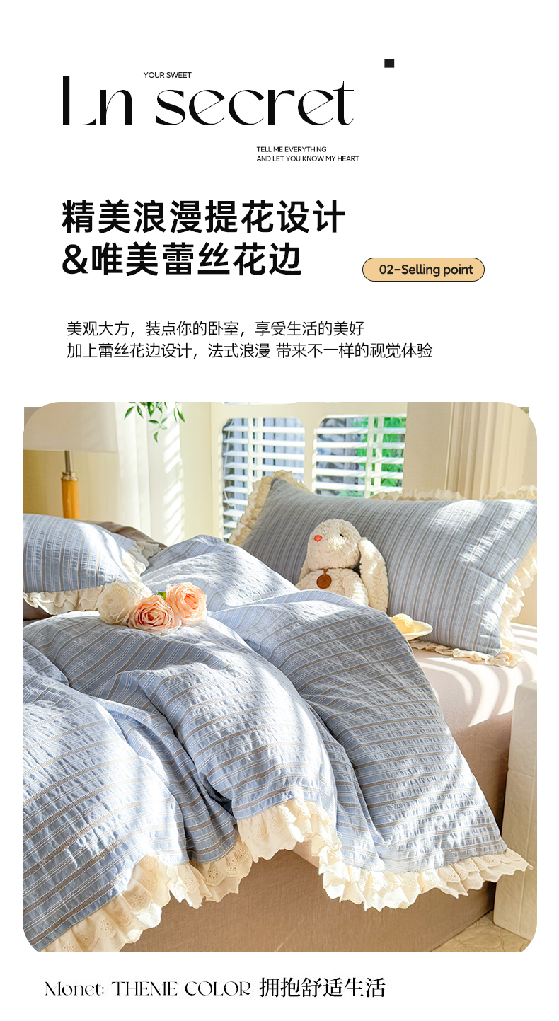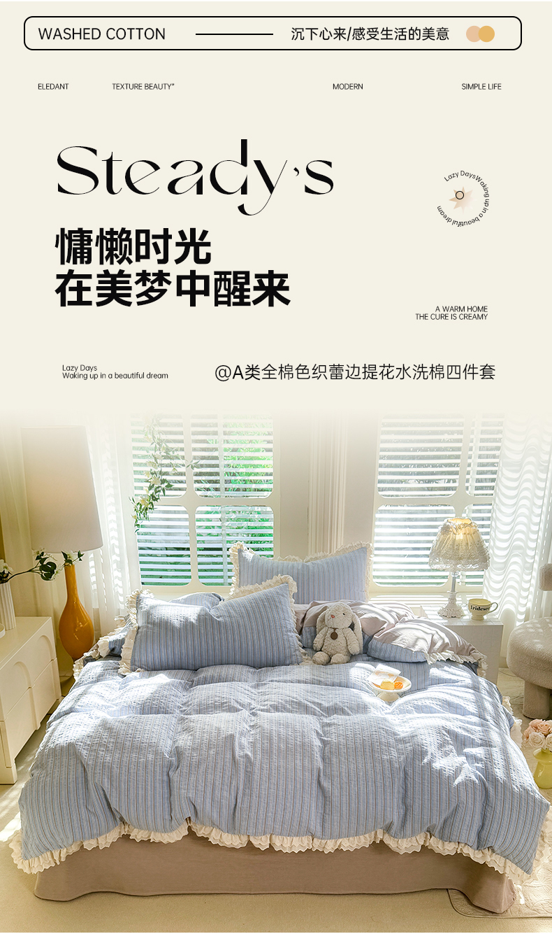 (总)棉小二 2025新款全棉色织提花水洗棉花边四件套-漫时光,漫时光-粉,漫时光-黄,漫时光-蓝,漫时光-紫