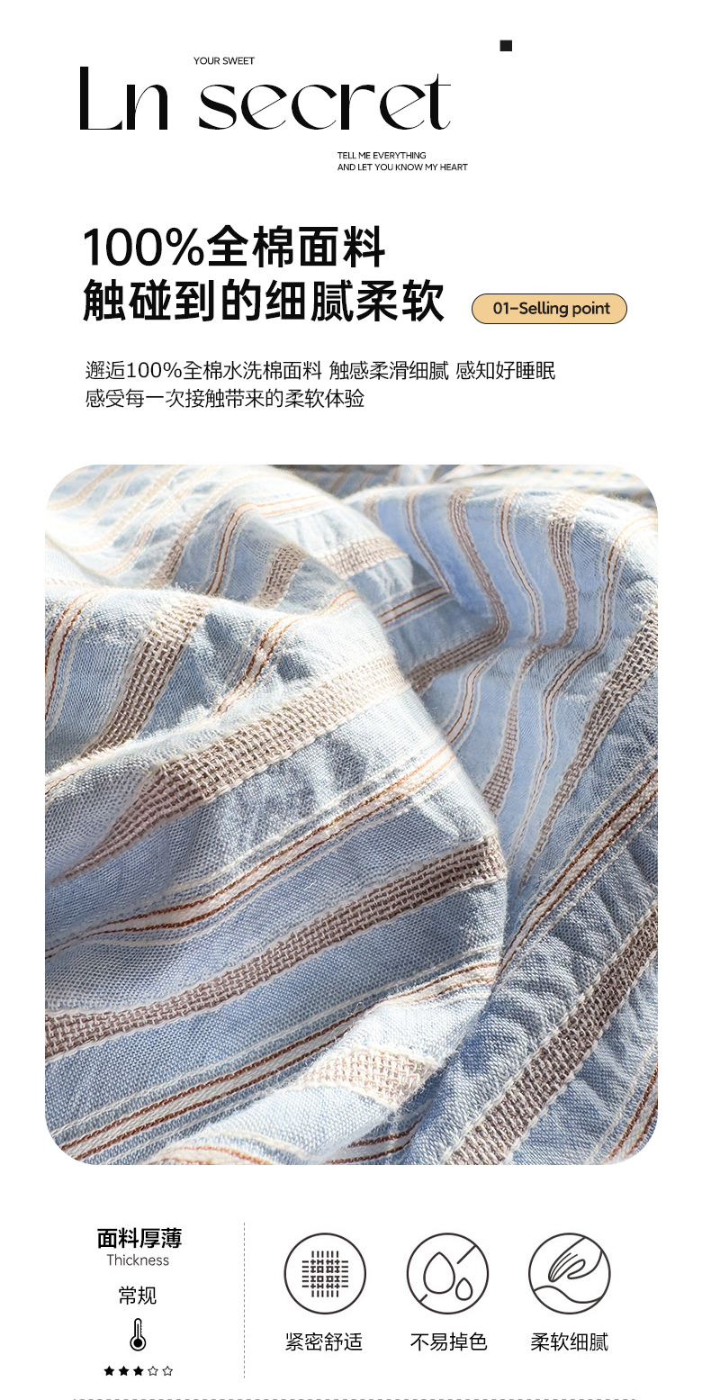 (总)棉小二 2025新款全棉色织条纹双层纱四件套,条纹白,条纹咖,条纹驼