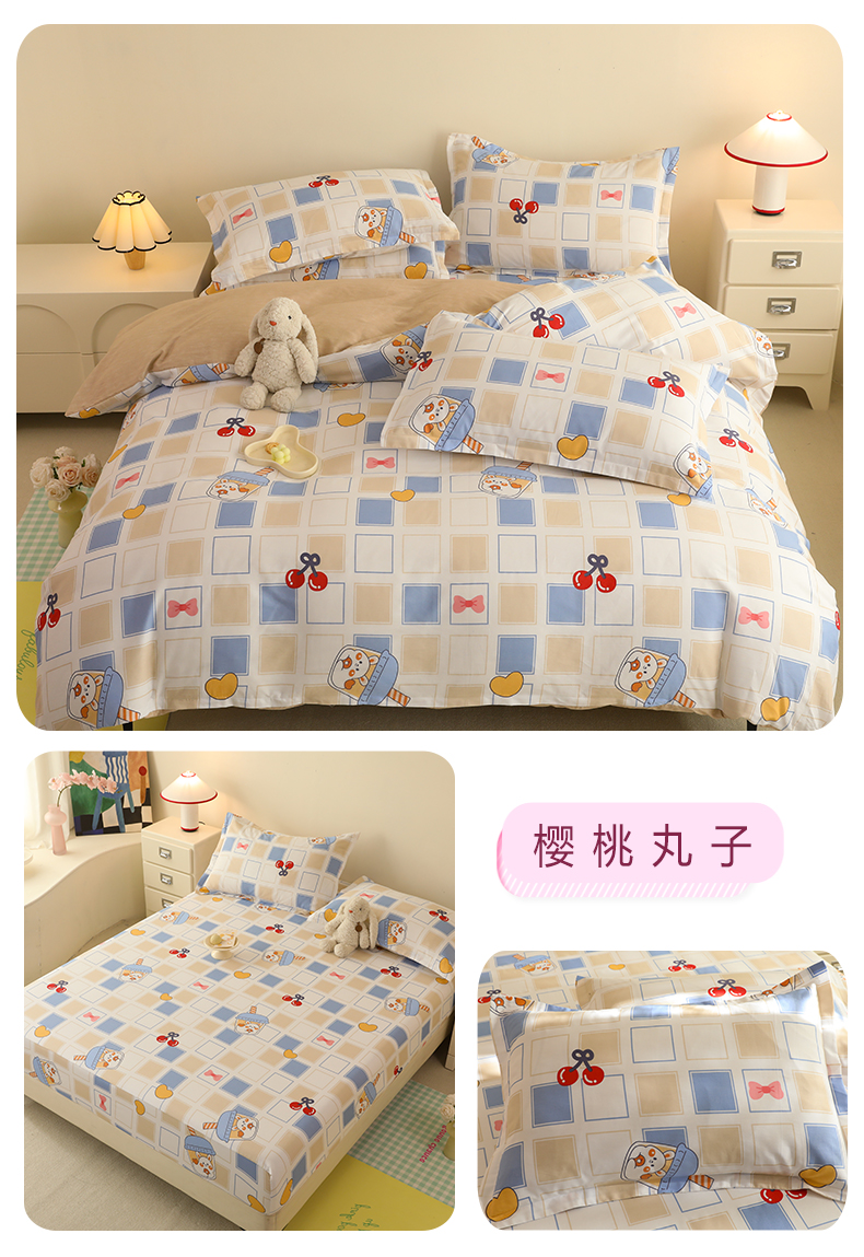 八十八家纺 2025新款全棉12868床笠款四件套樱桃丸子