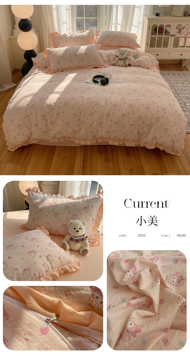 (总)韩都家居 2025新款法式花边印花牛奶绒四件套,茶花,豹纹咖,画蝶,加州风情,洛莉,陌离,南瓜,岁月留声,忘忧,艺境