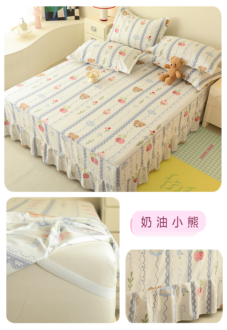 当前位置: 91家纺网 > 商品网购 > 床上用品 > 床裙 > 八十八家纺 2025新款全棉12868系列四件套单品床裙奶油小熊