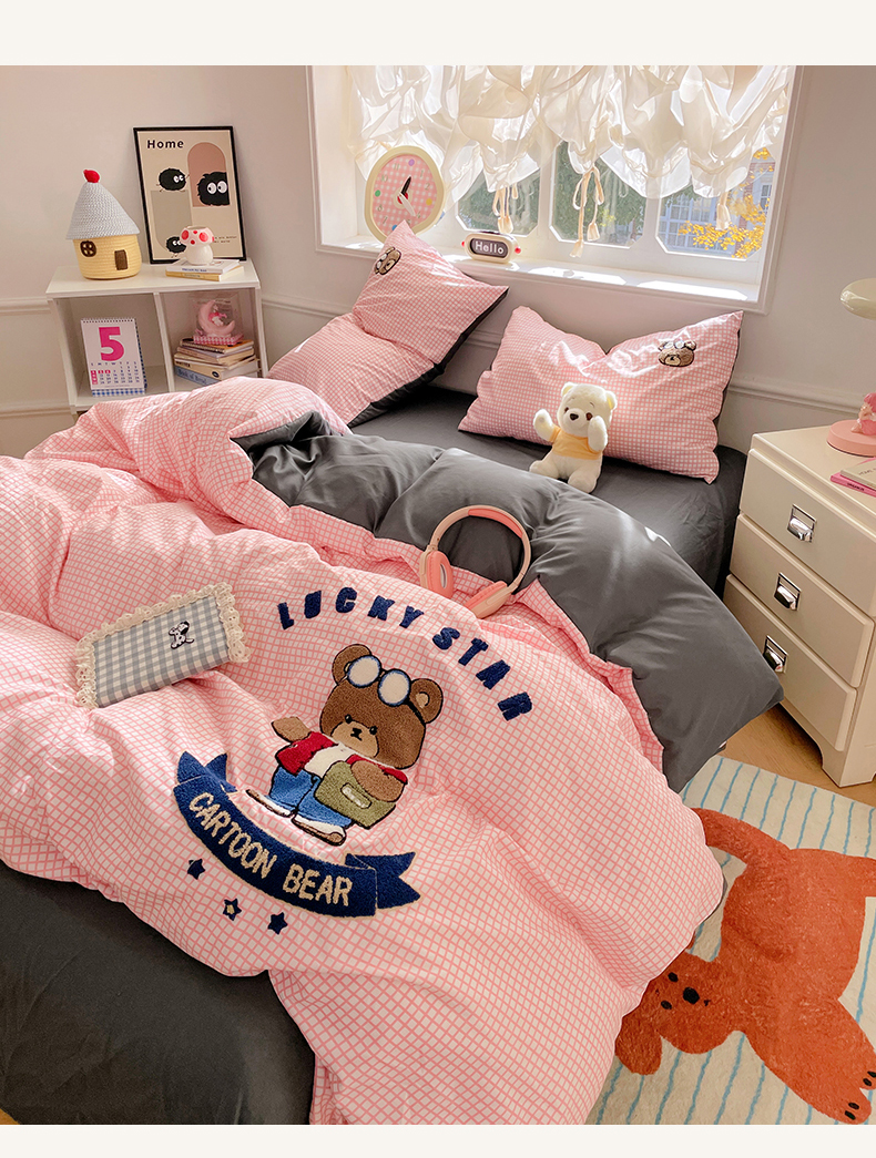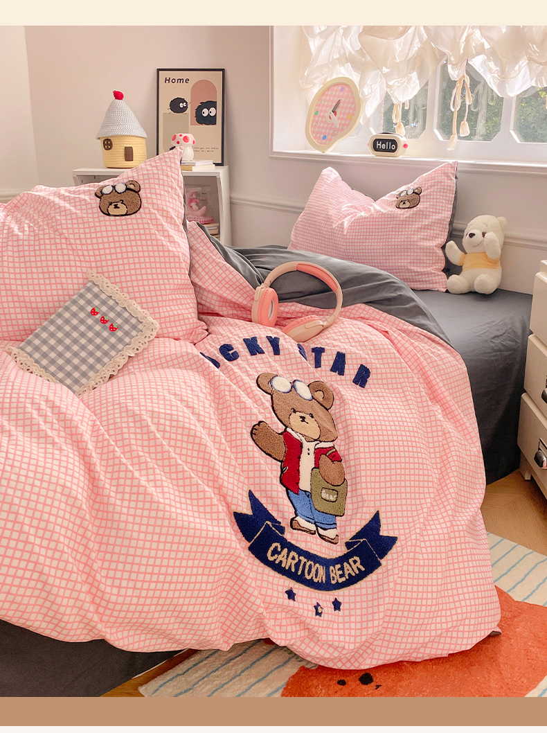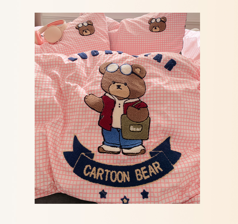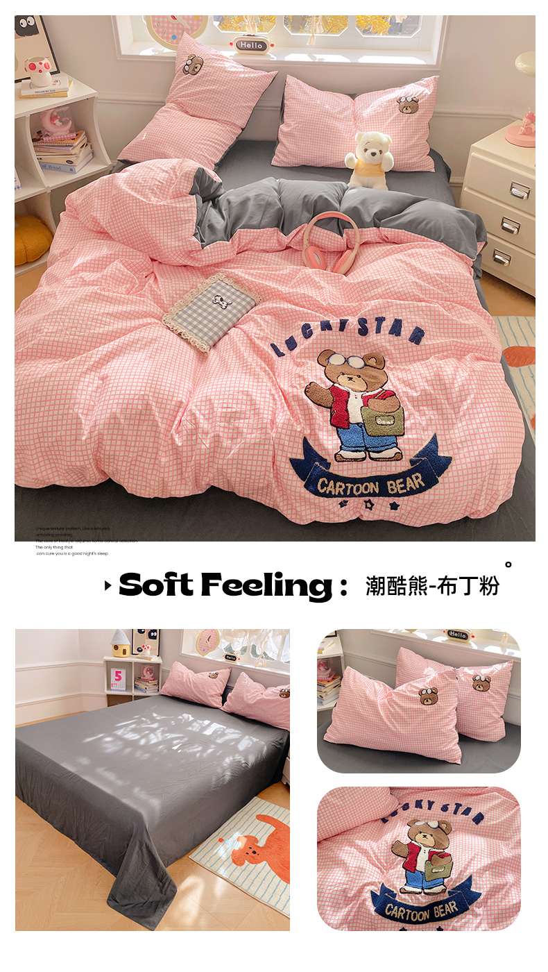 当前位置: 91家纺网 > 商品网购 > 床品套件 > 四件套 > 水洗棉四件套 > 优卡迪家纺馆 2025新款110克水洗棉无印风毛巾绣四件套【下载文件夹包含买家秀】 潮酷熊-布丁粉