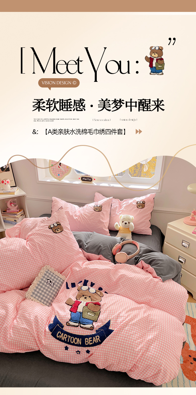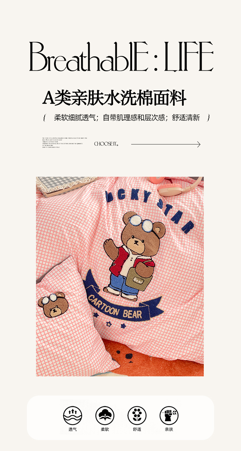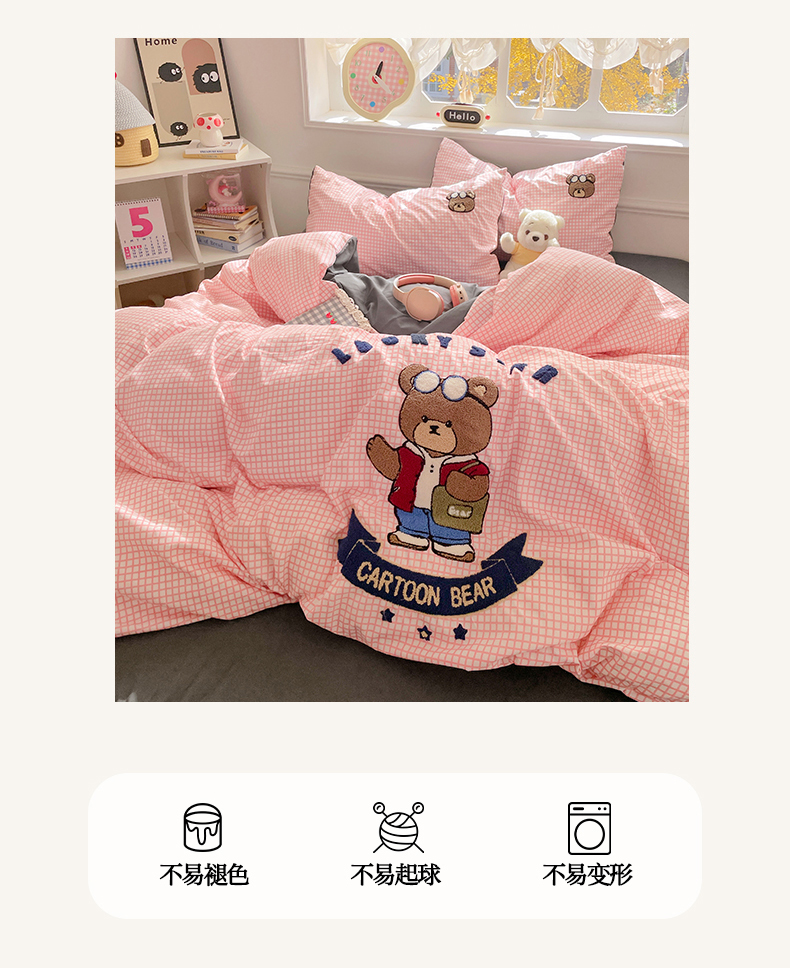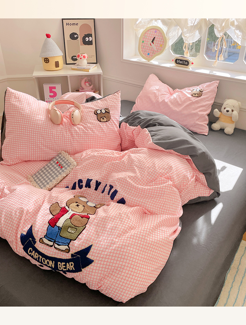 当前位置: 91家纺网 > 商品网购 > 床品套件 > 四件套 > 水洗棉四件套 > 优卡迪家纺馆 2025新款110克水洗棉无印风毛巾绣四件套【下载文件夹包含买家秀】 潮酷熊-布丁粉