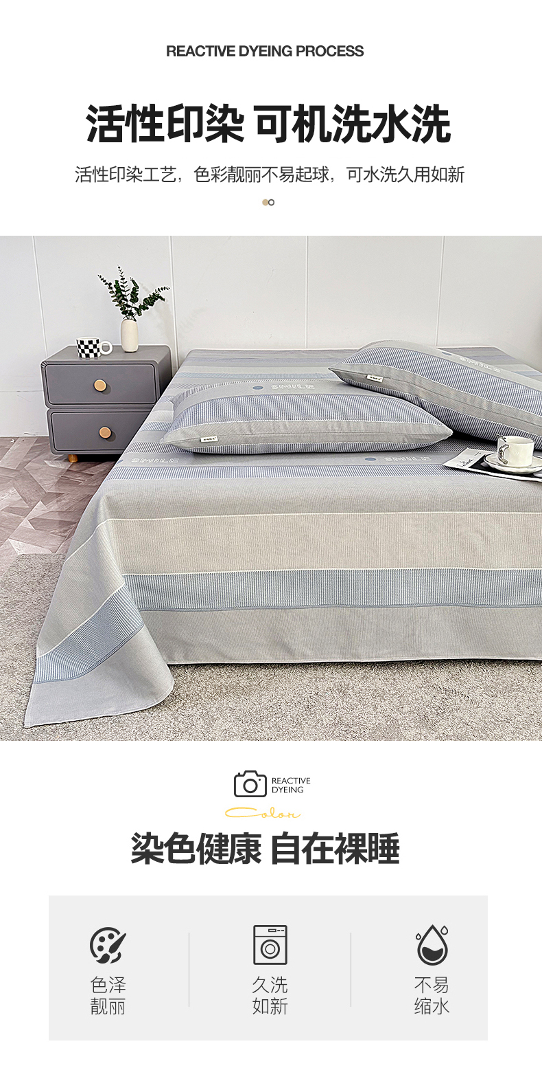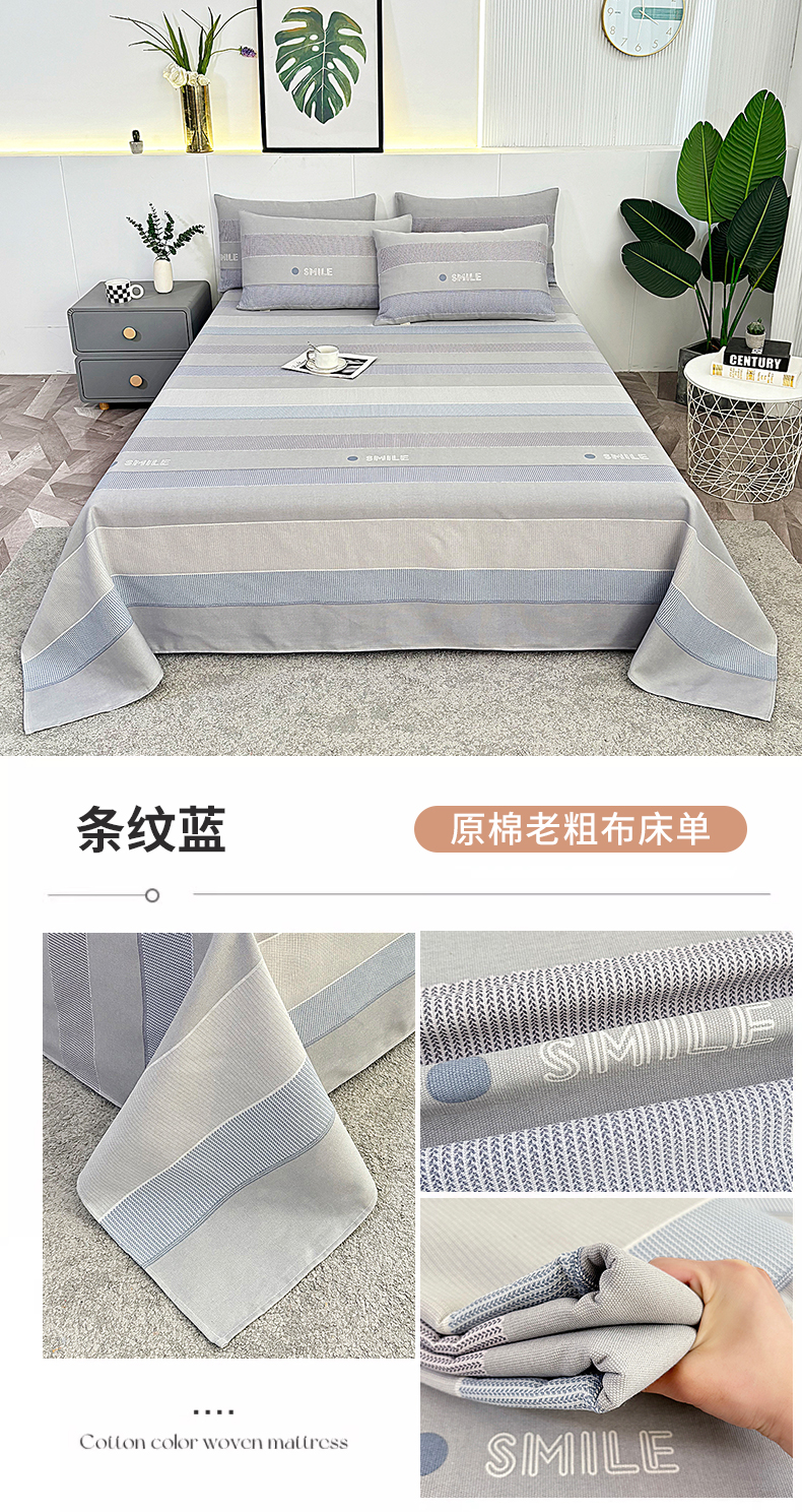 伊而梦蚊帐 2025新款原棉老粗布床单 条纹蓝