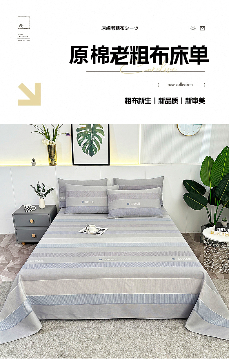 • 91家纺网 家纺一手货源 找家纺 伊而梦蚊帐 2025新款原棉老粗布床单 条纹蓝