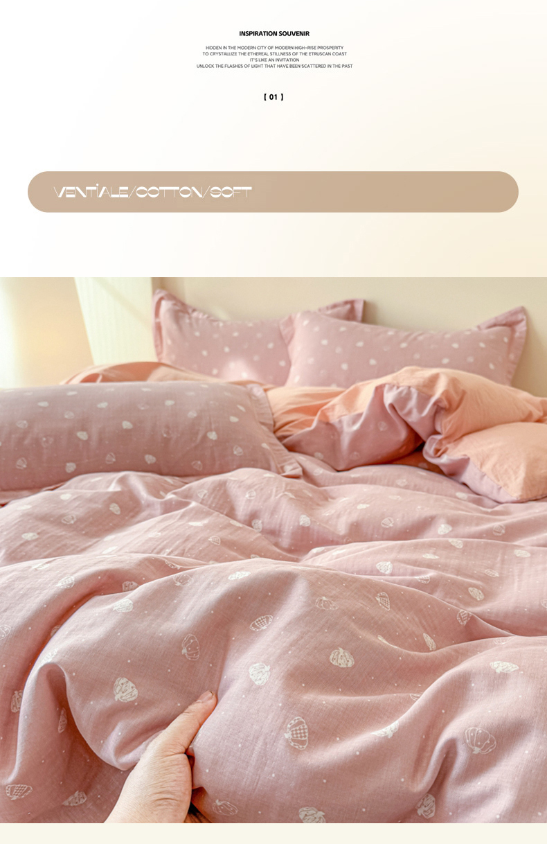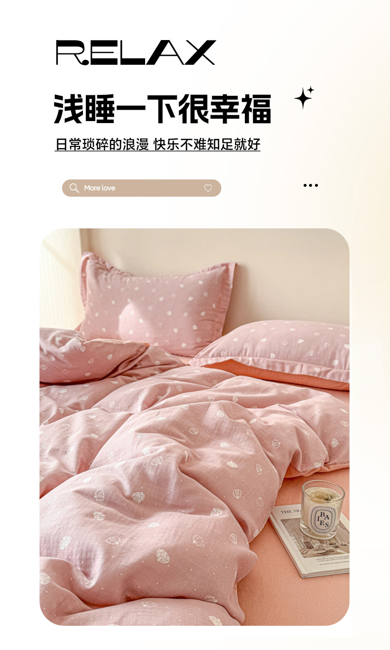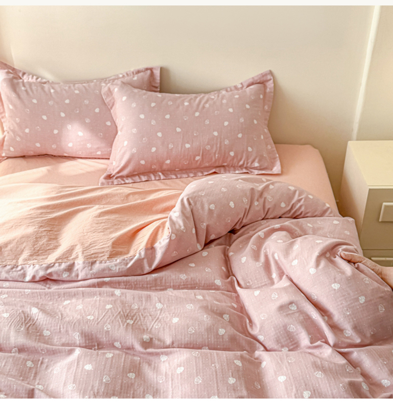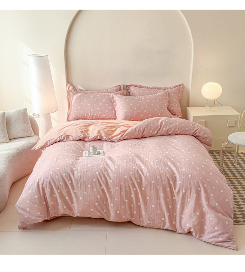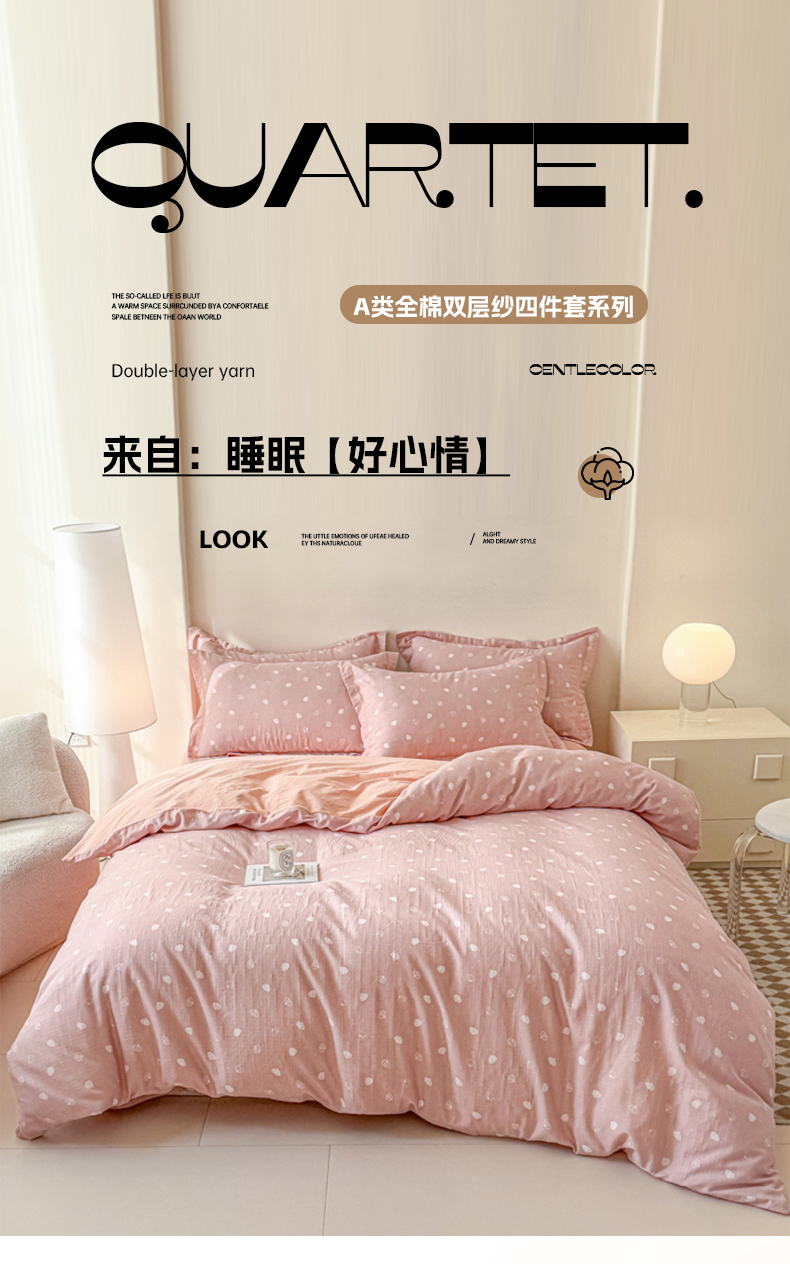 喜四方 2025新款全棉A类母婴级抗菌全棉双层纱四件套 南瓜点点-粉