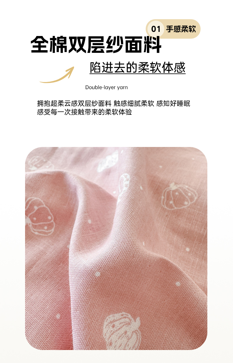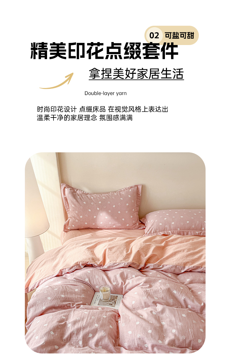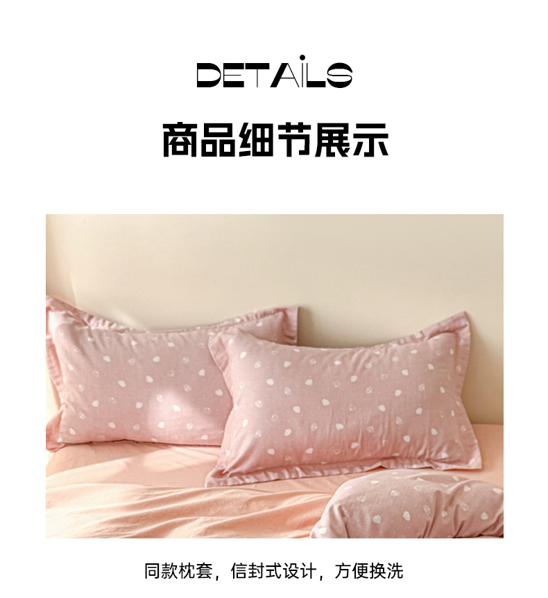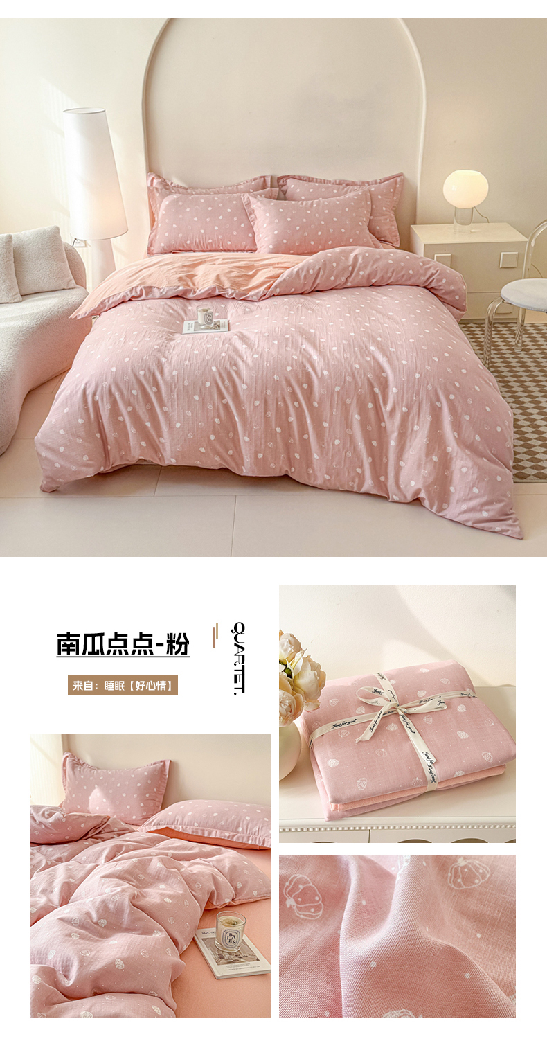 商品名称:喜四方 2025新款全棉A类母婴级抗菌全棉双层纱四件套 南瓜点点-粉