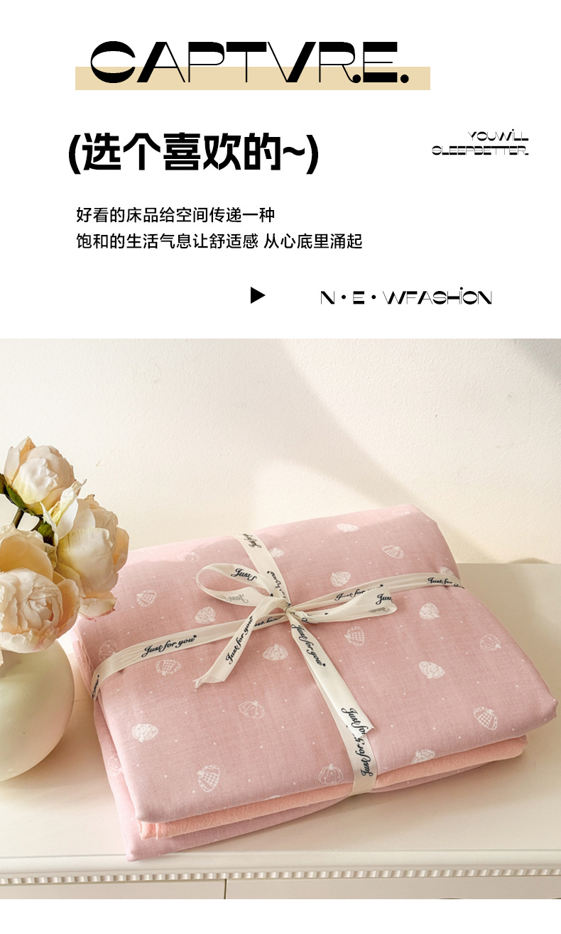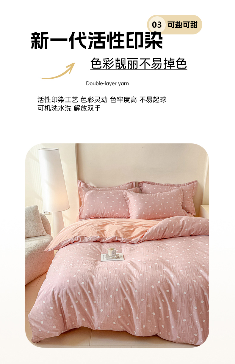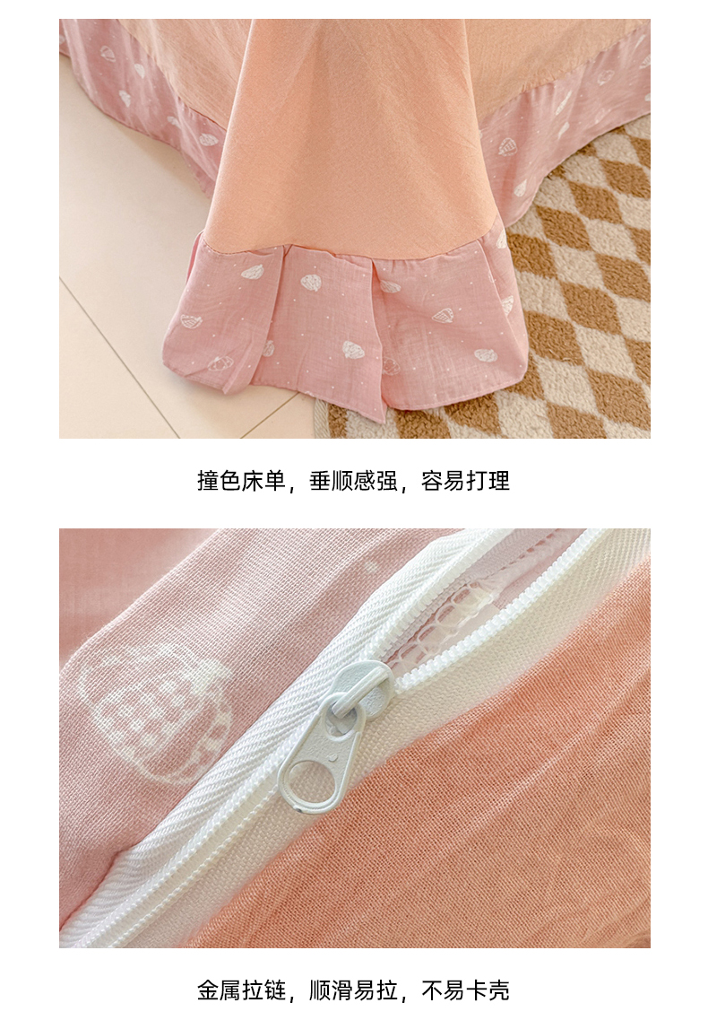 商品名称:喜四方 2025新款全棉A类母婴级抗菌全棉双层纱四件套 南瓜点点-粉